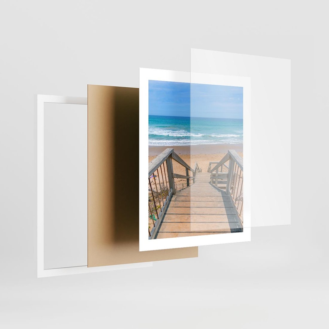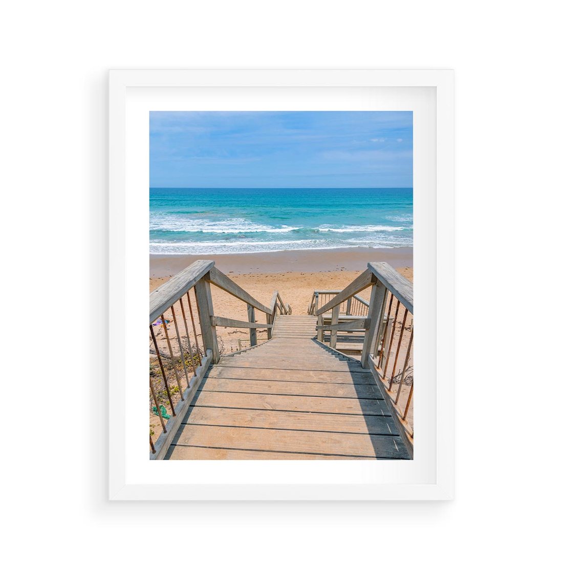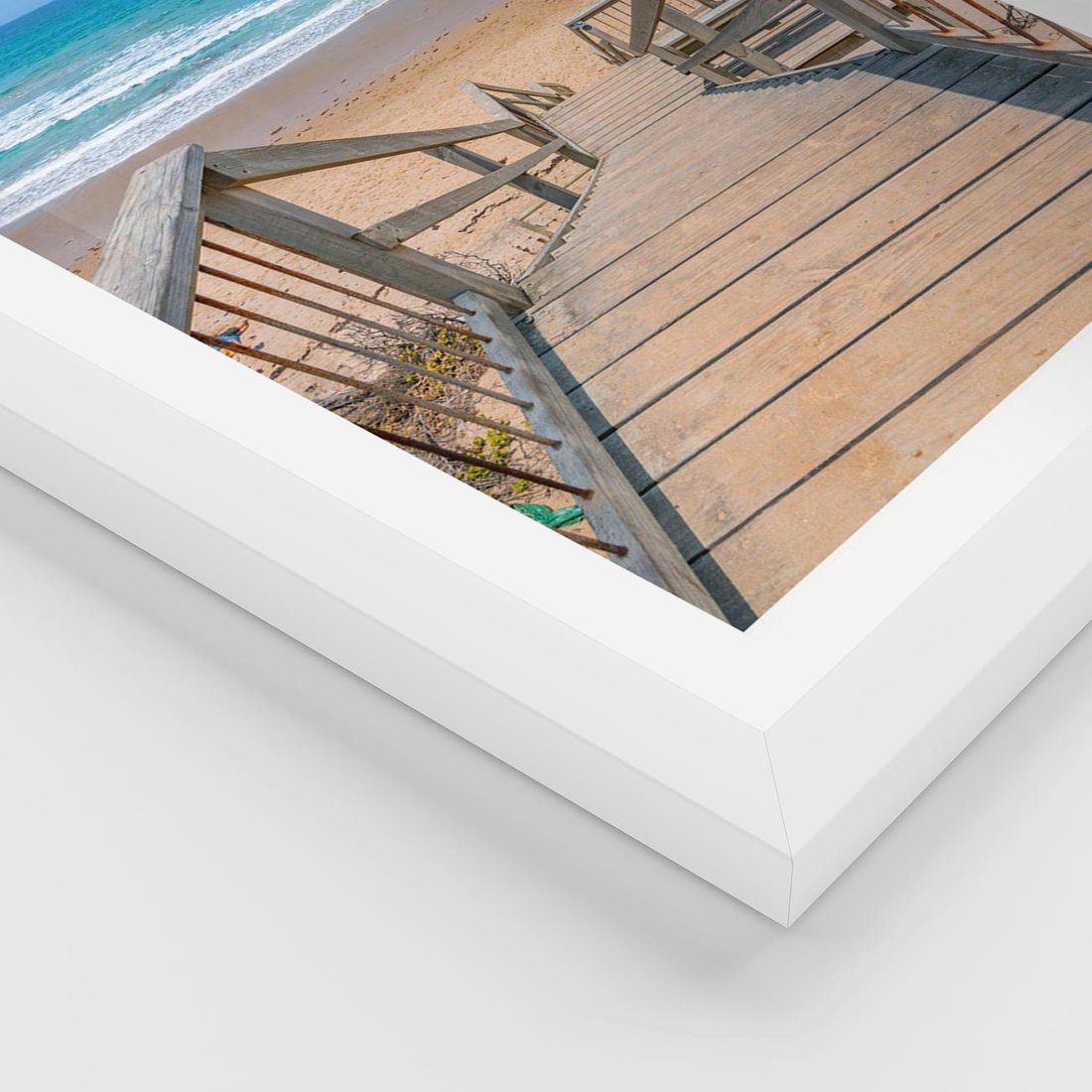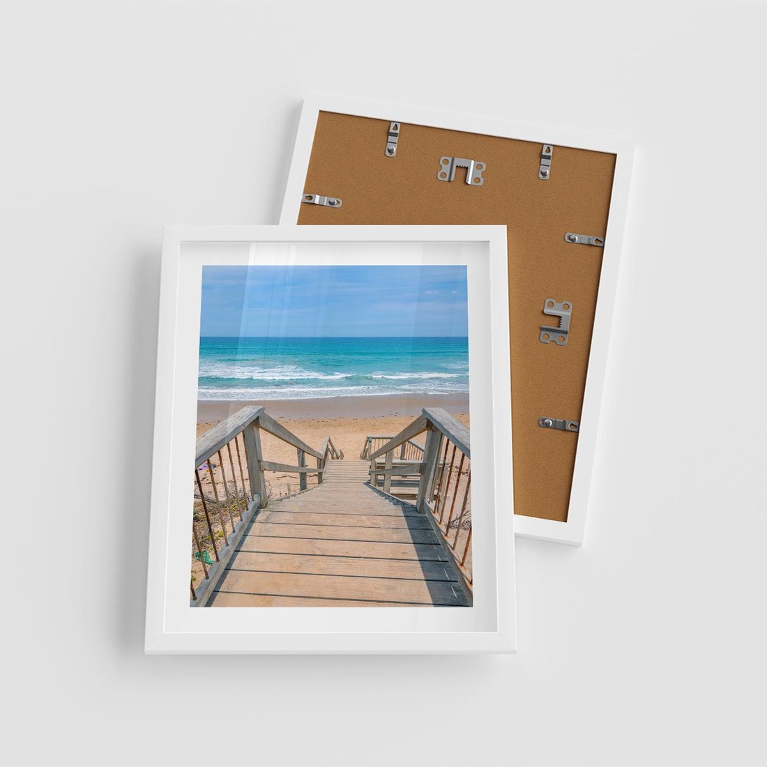 Plakat w ramie 40x50 - Pomost ku Morzu - pomost na plaży, morze - rama biała