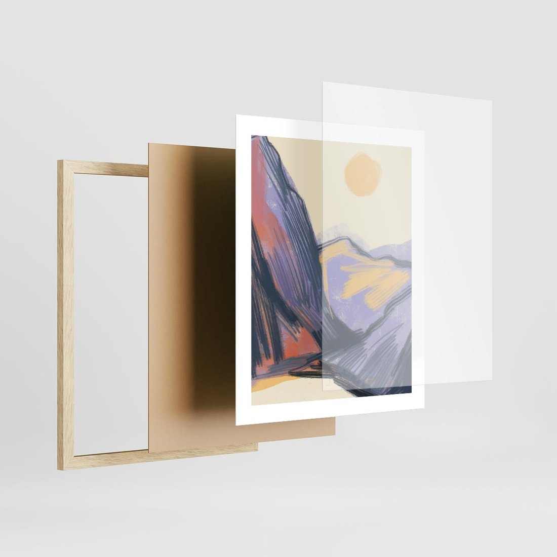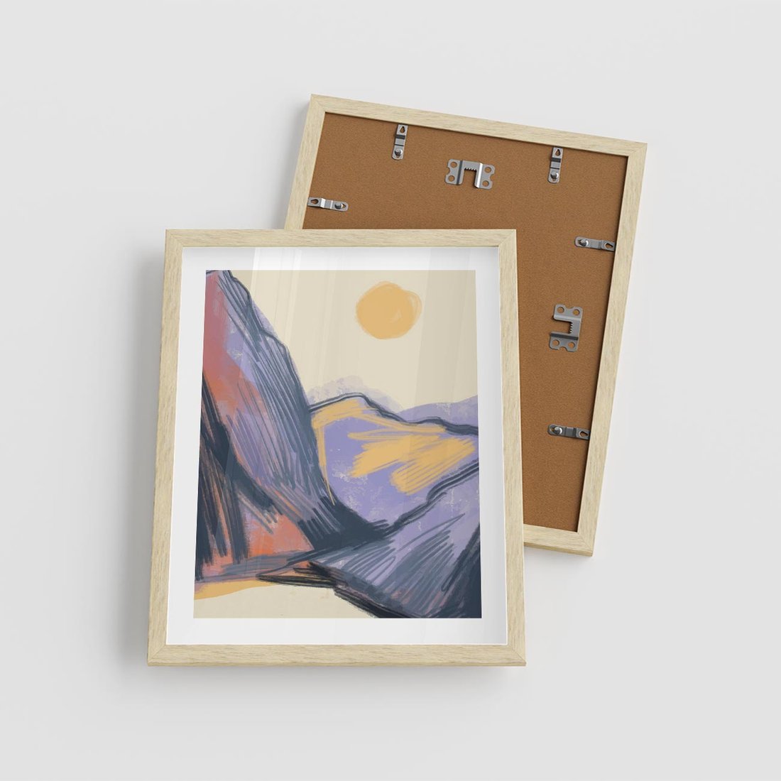Ten nowoczesny plakat przedstawia pastelowy krajobraz z górskimi szczytami i malowniczym zachodem słońca. To dzieło sztuki wnosi do Twojej przestrzeni spokój, piękno przyrody i chwilę zachwytu. Pastelowe odcienie nadają mu delikatności, a jednocześnie pozostają w duchu nowoczesnego designu. Idealny wybór dla miłośników przyrody i spokojnych pejzaży.