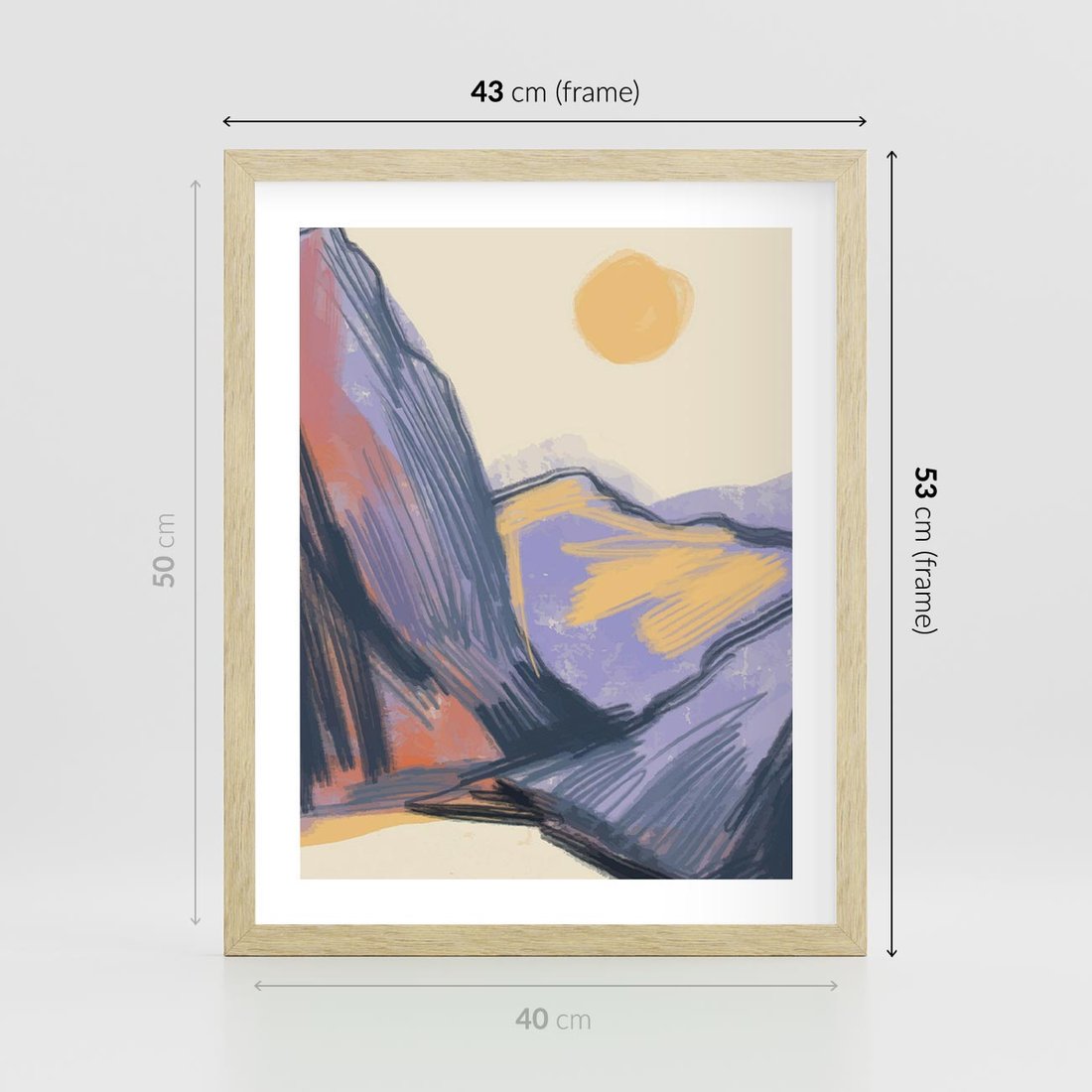 Plakat w ramie 40x50 - Ponad Szczytami - pastelowy krajobraz, nowoczesny plakat - rama drewno