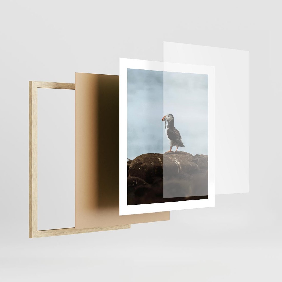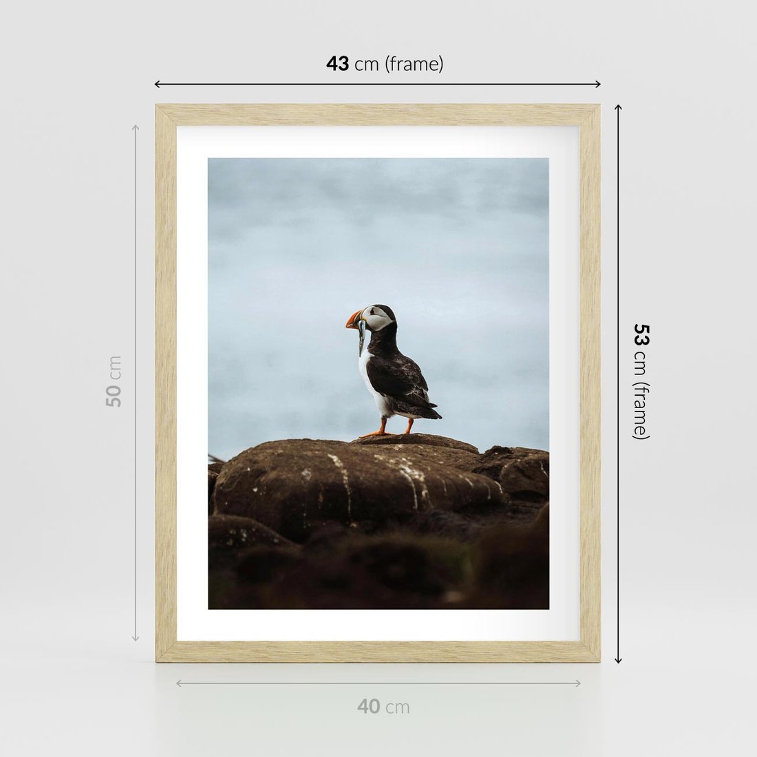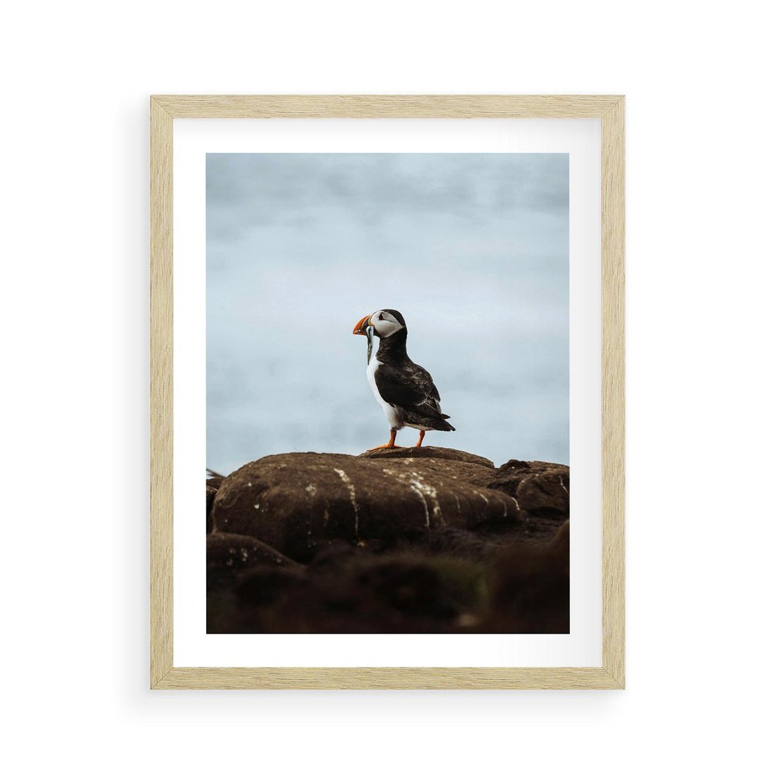 Plakat w ramie 40x50 - Portret Ptaka Morskiego - maskonur, ptak - rama drewno
