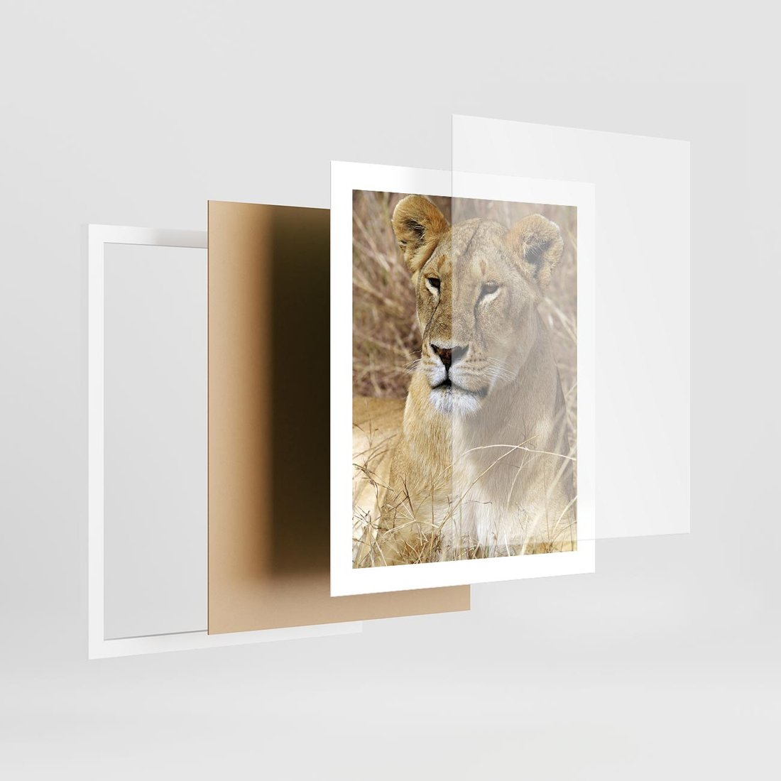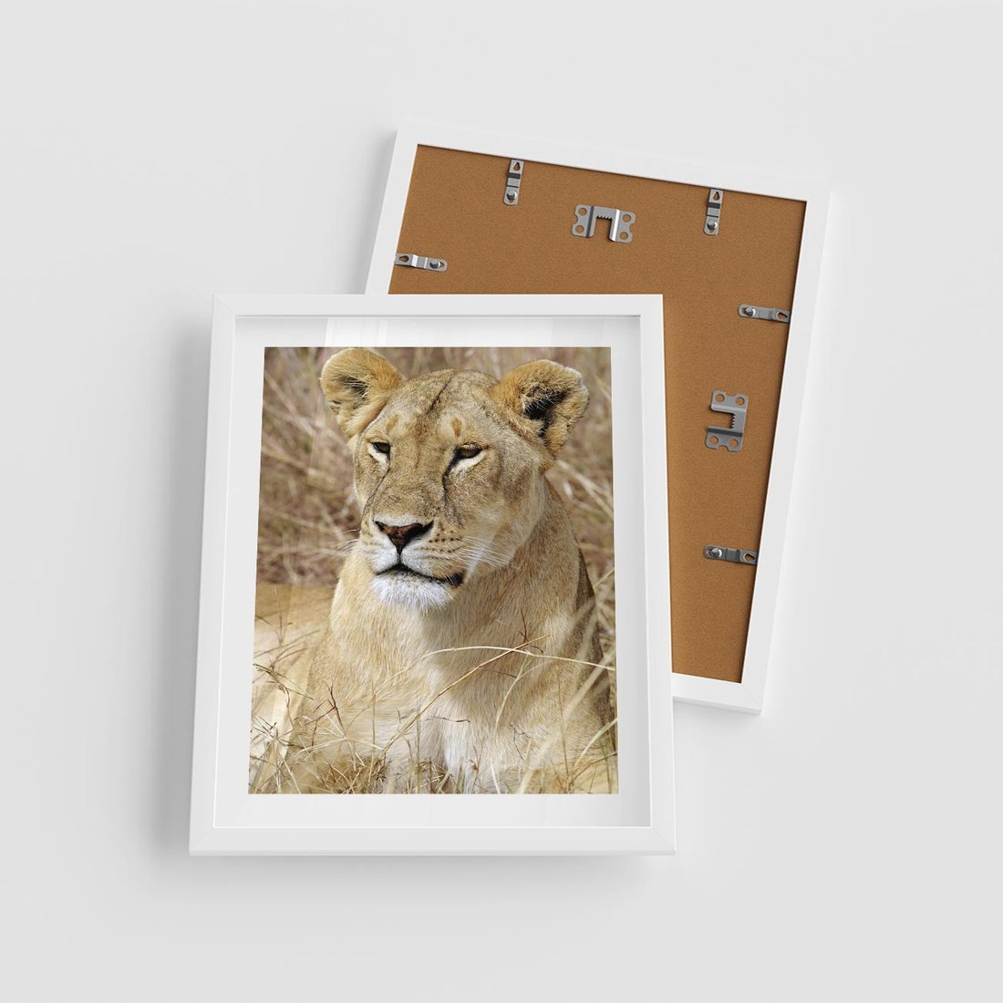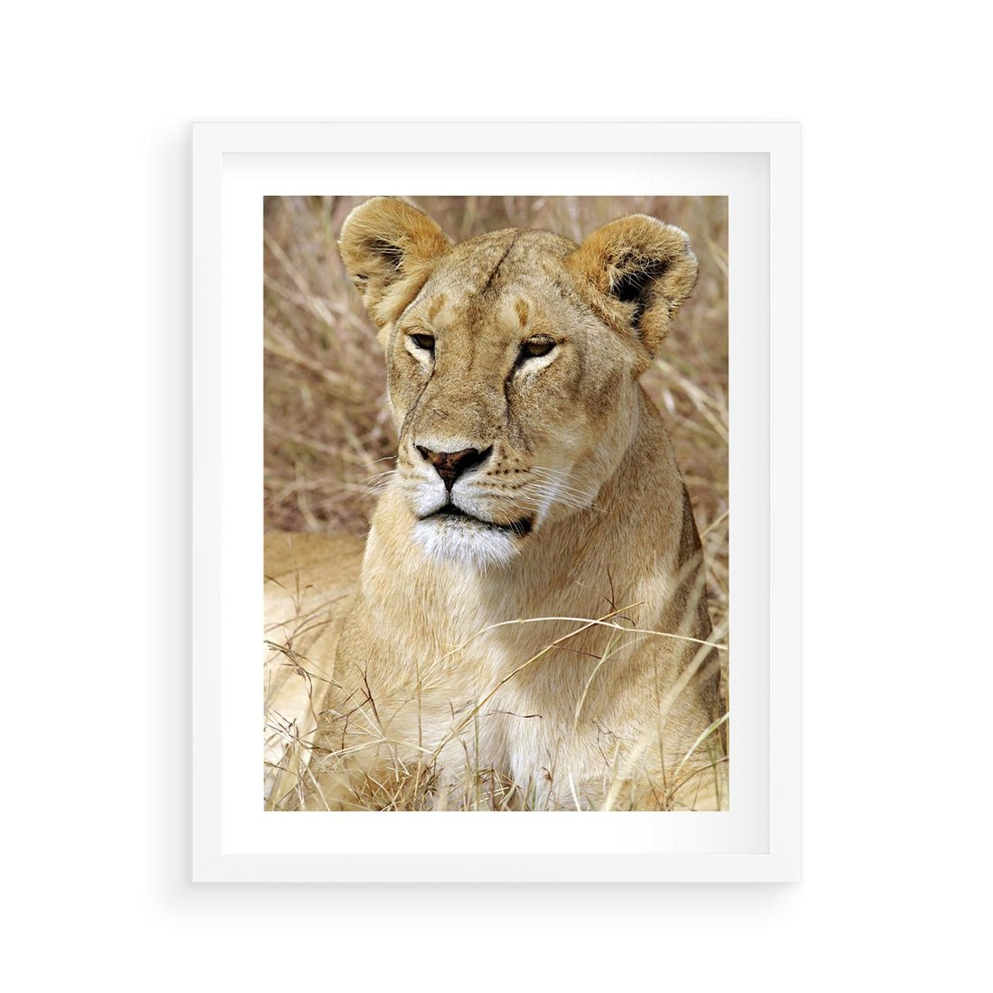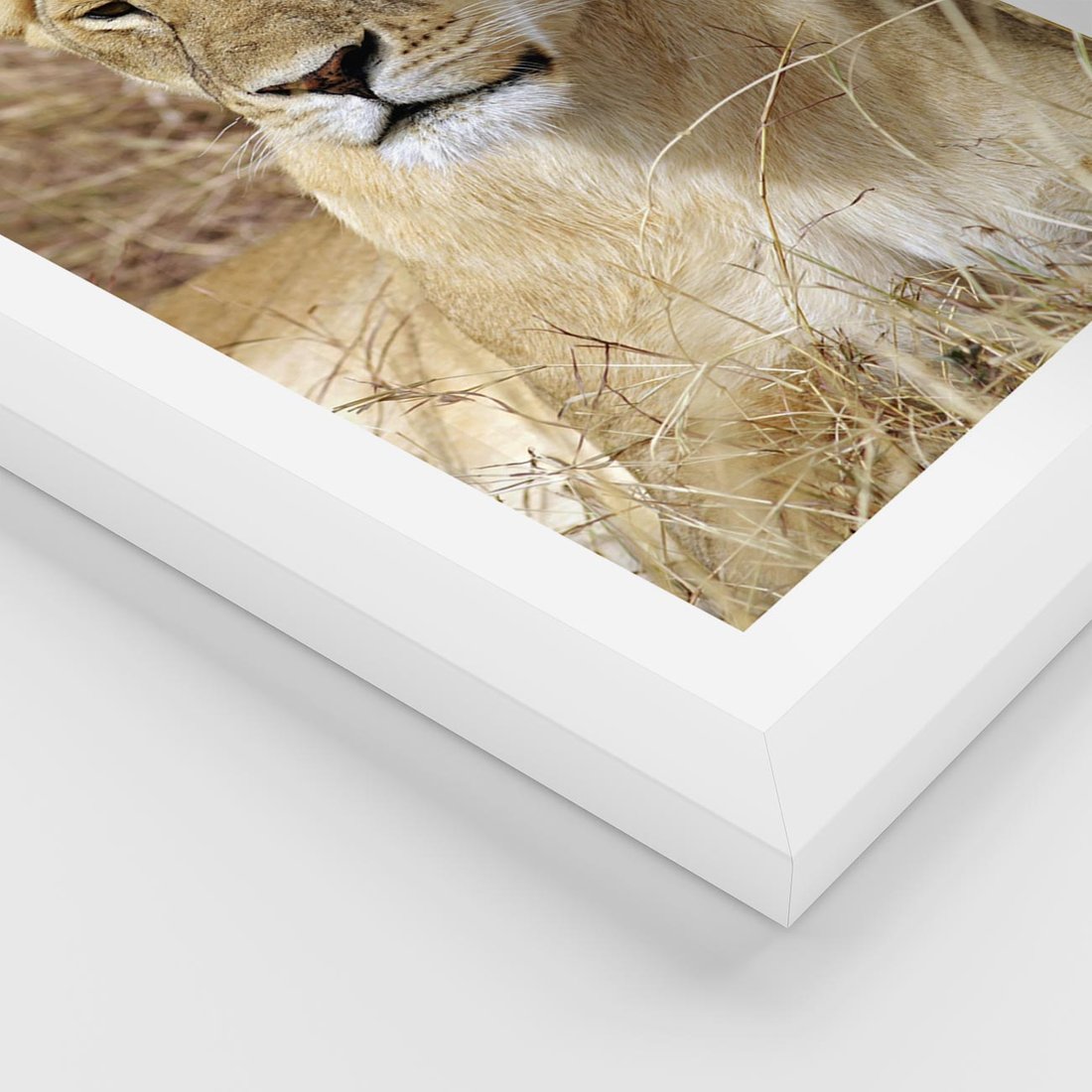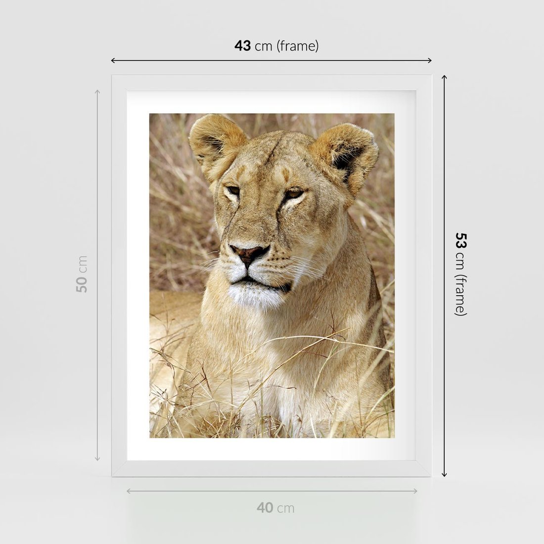 Plakat w ramie 40x50 - Potęga lwów w Afryce - lew, lwica - rama biała