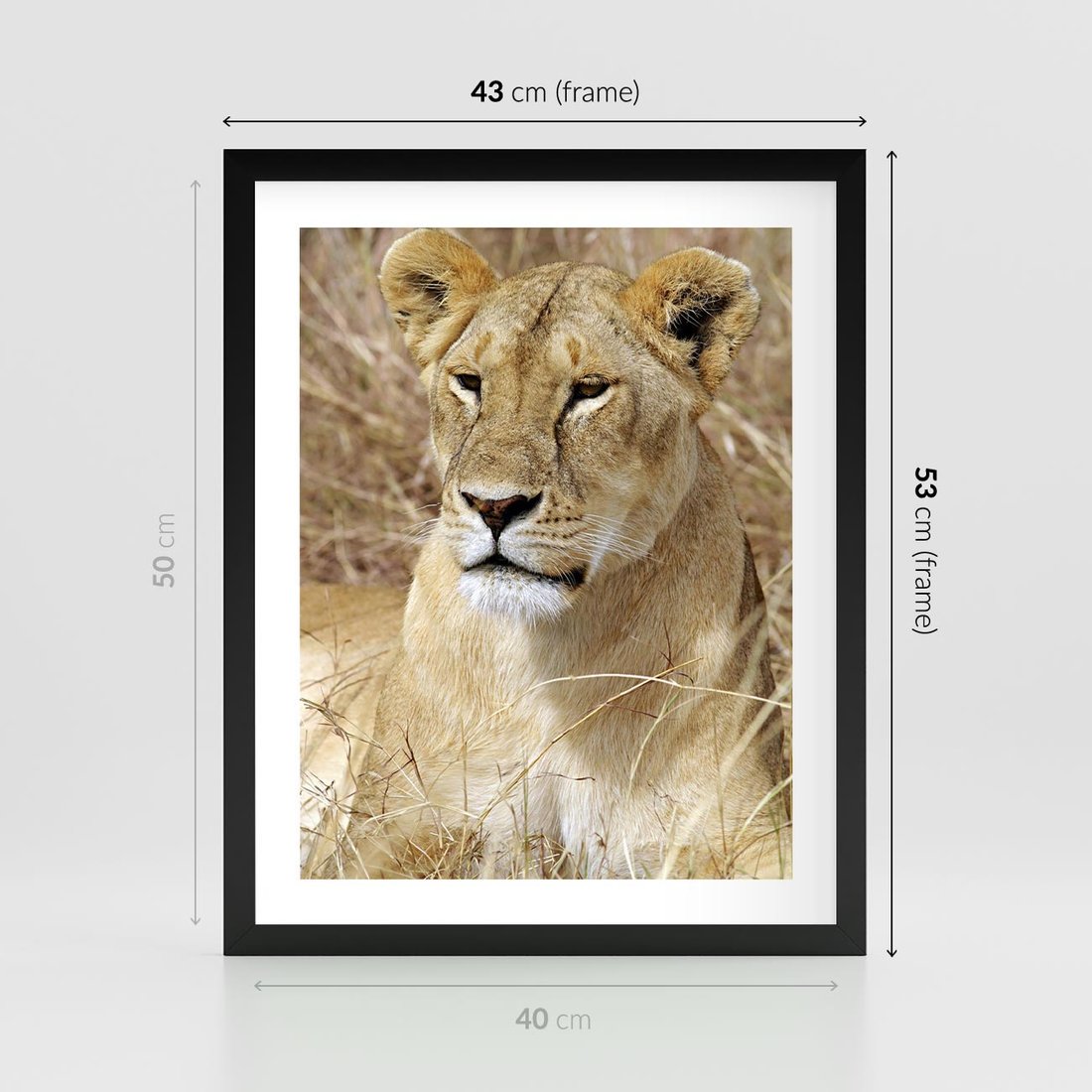 Plakat w ramie 40x50 - Potęga lwów w Afryce - lew, lwica - rama czarna