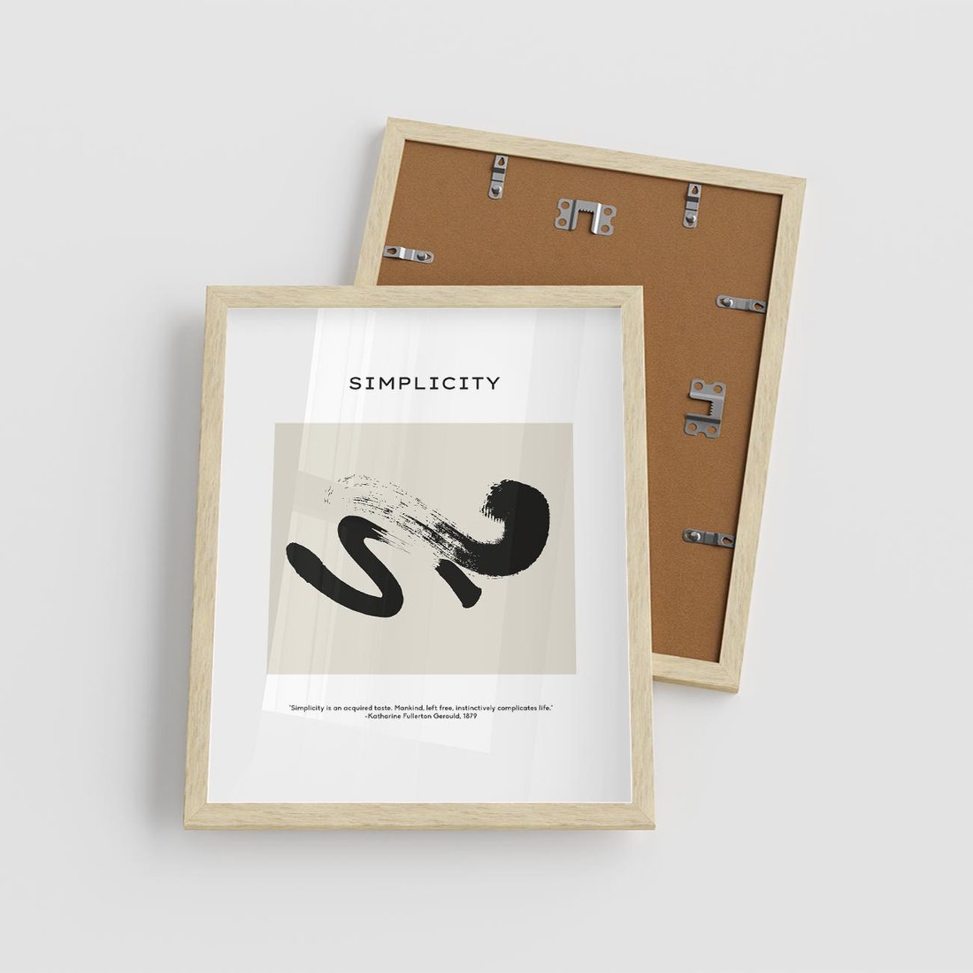 Ten plakat przenosi nas w świat abstrakcji, gdzie maźnięcia farbą tworzą unikalne kompozycje na czarno-białym tle. Zintegrowana typografia - "Simplicity" - jest jak manifest prostoty, dodając głębszy kontekst temu dziełu. To wyjątkowe połączenie abstrakcji i minimalizmu, które zachęca do refleksji nad znaczeniem i pięknem prostoty.