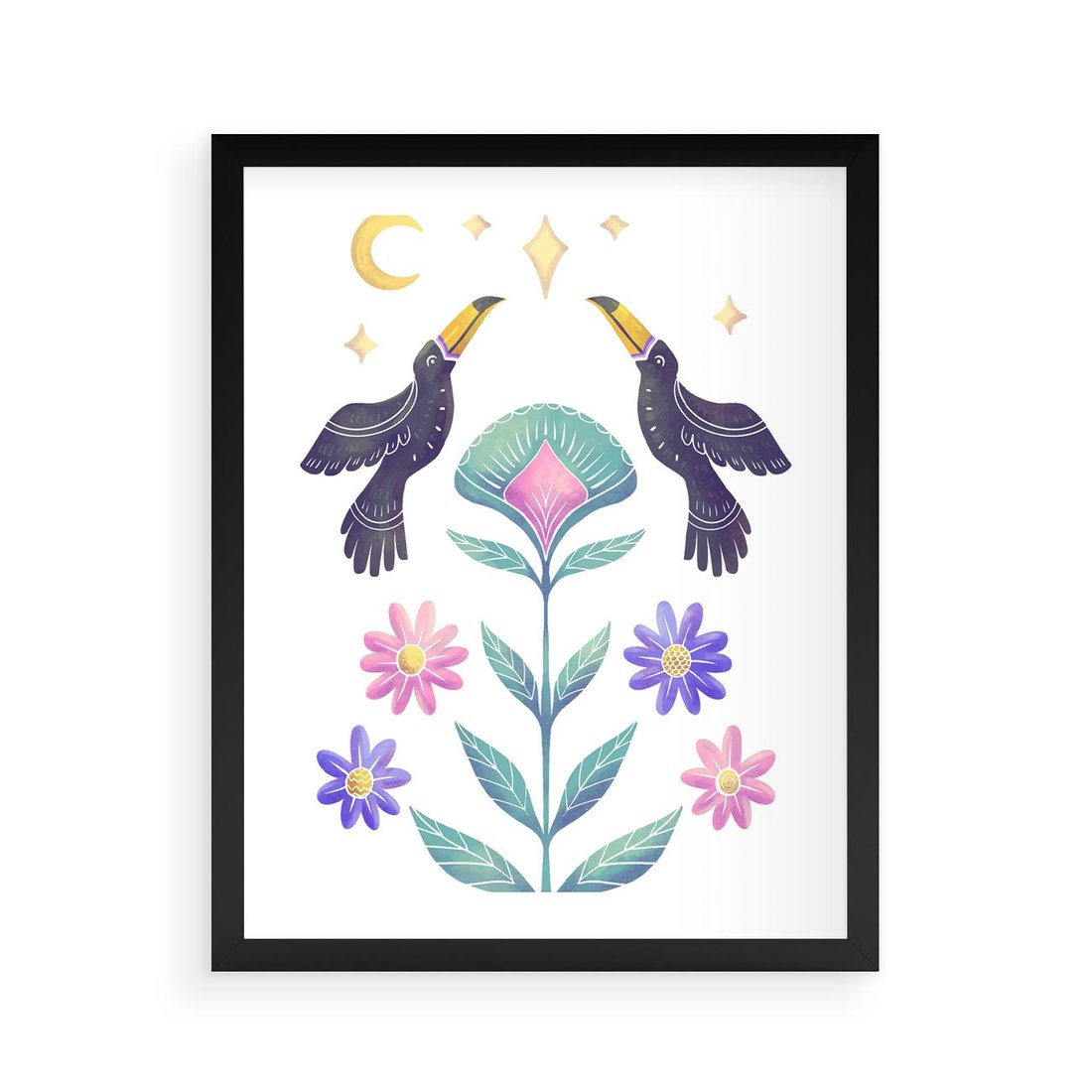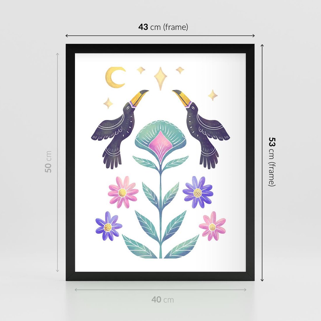 Plakat w ramie 40x50 - Przenikająca Dżungla - boho plakat, tukany - rama czarna