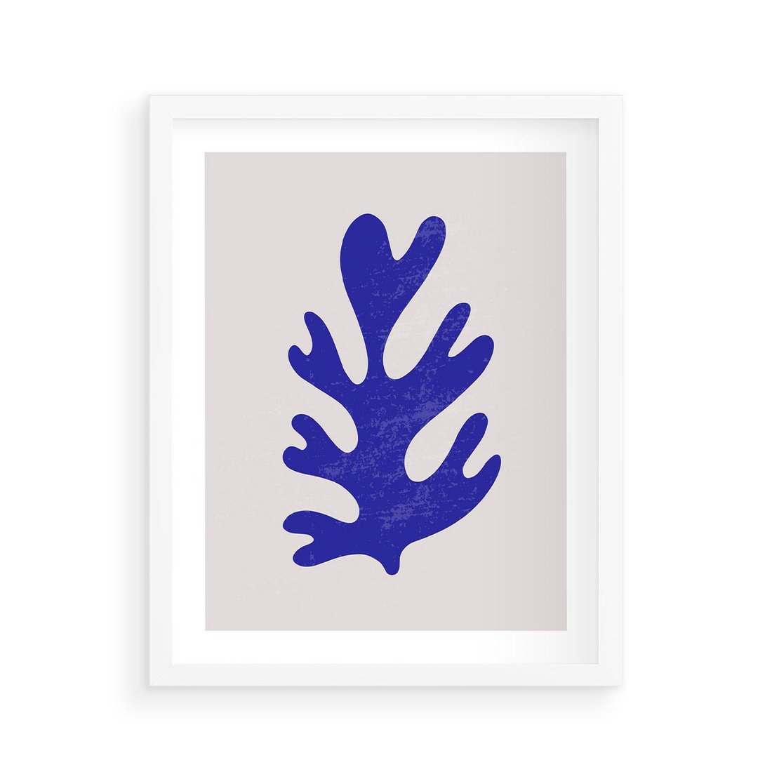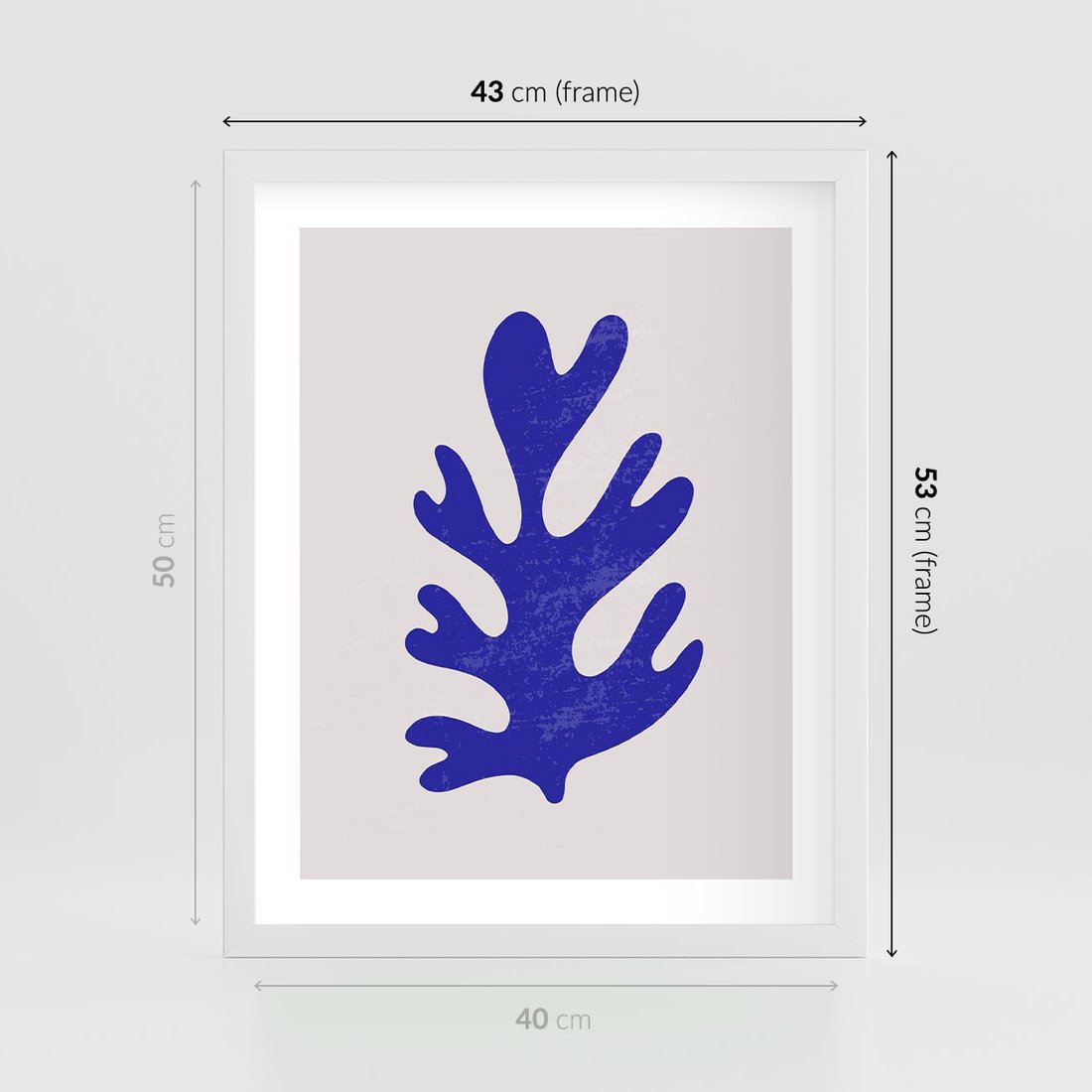 Plakat w ramie 40x50 - Przenikająca Struktura - boho plakat, niebieski liść w intensywnym kolorze - rama biała