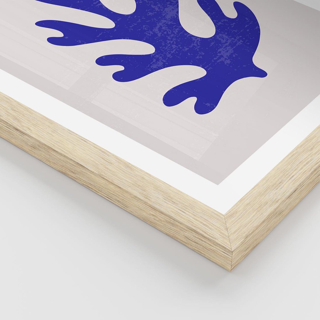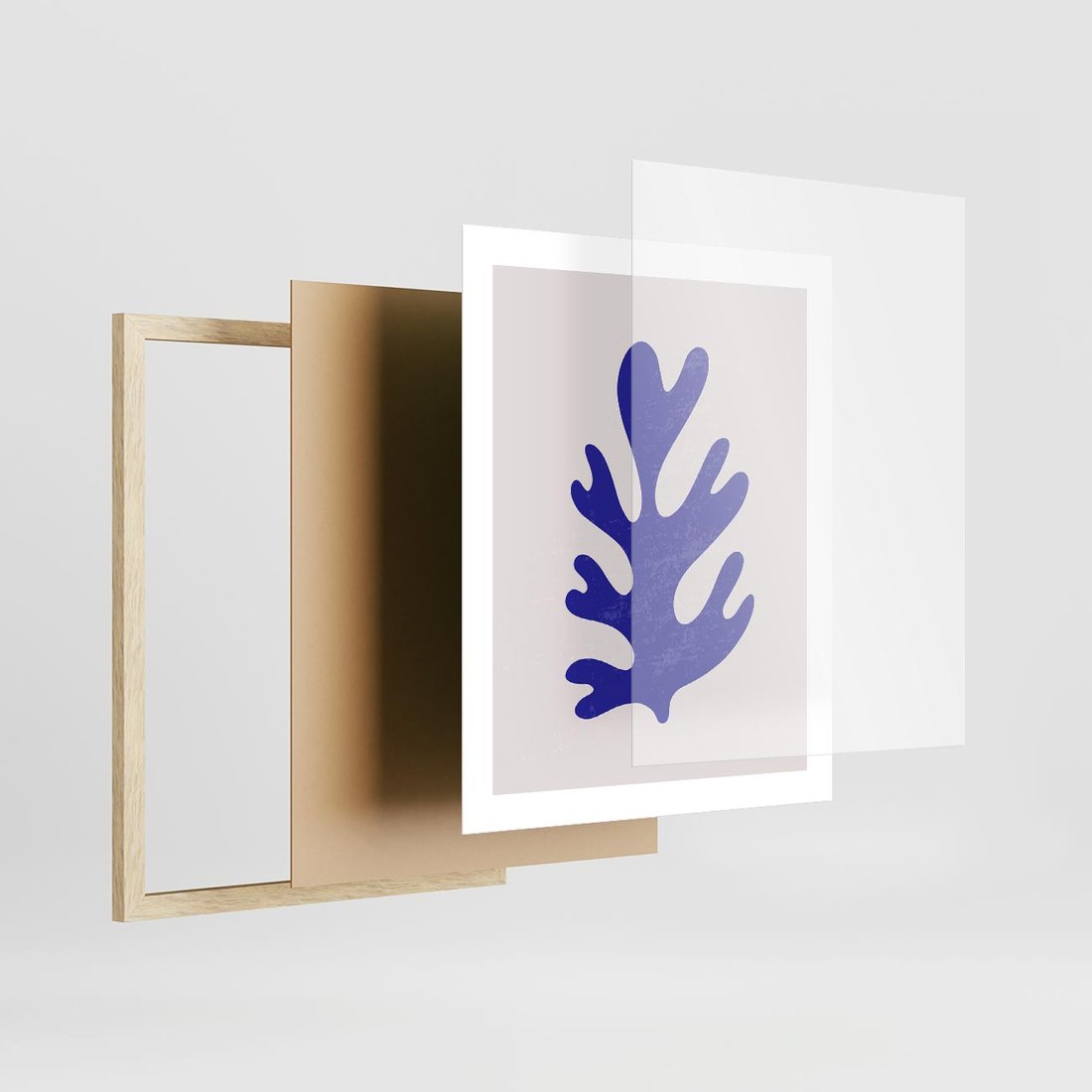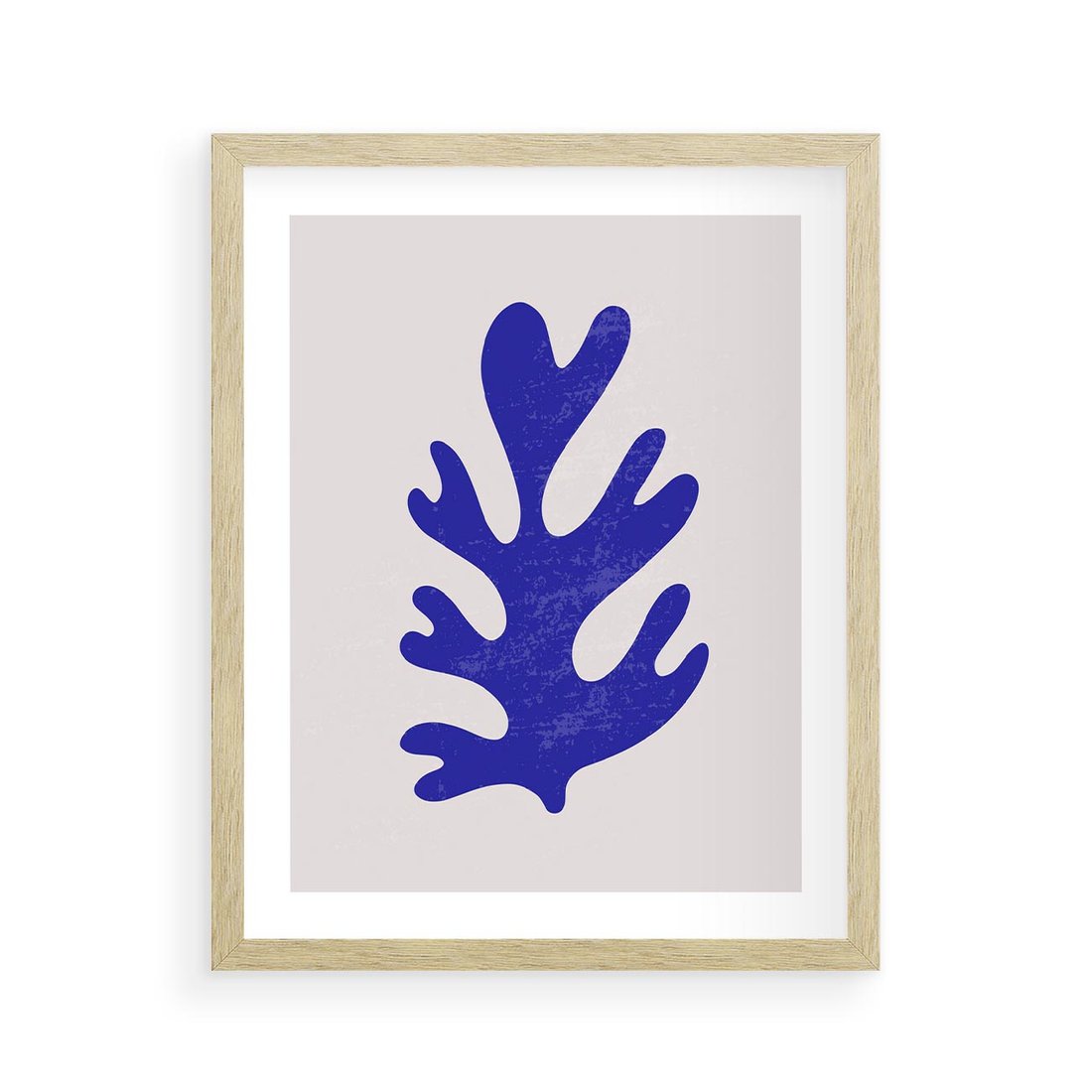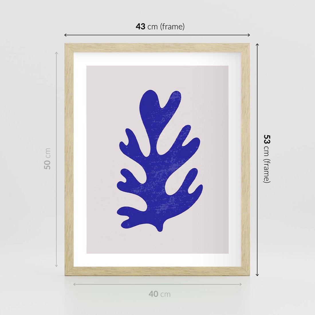 Plakat w ramie 40x50 - Przenikająca Struktura - boho plakat, niebieski liść w intensywnym kolorze - rama drewno