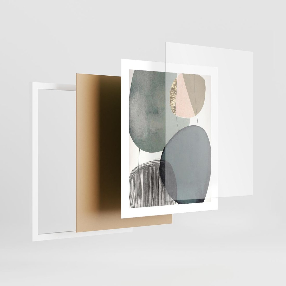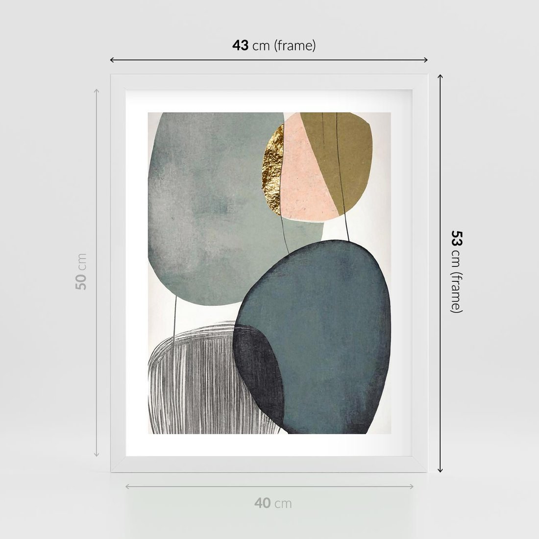 Plakat w ramie 40x50 - Przenikające Formy Duszy - abstrakcyjny obraz, geometryczne obłe formy - rama biała