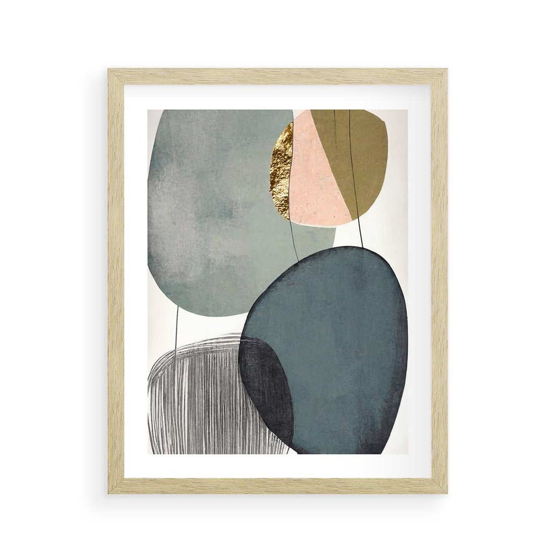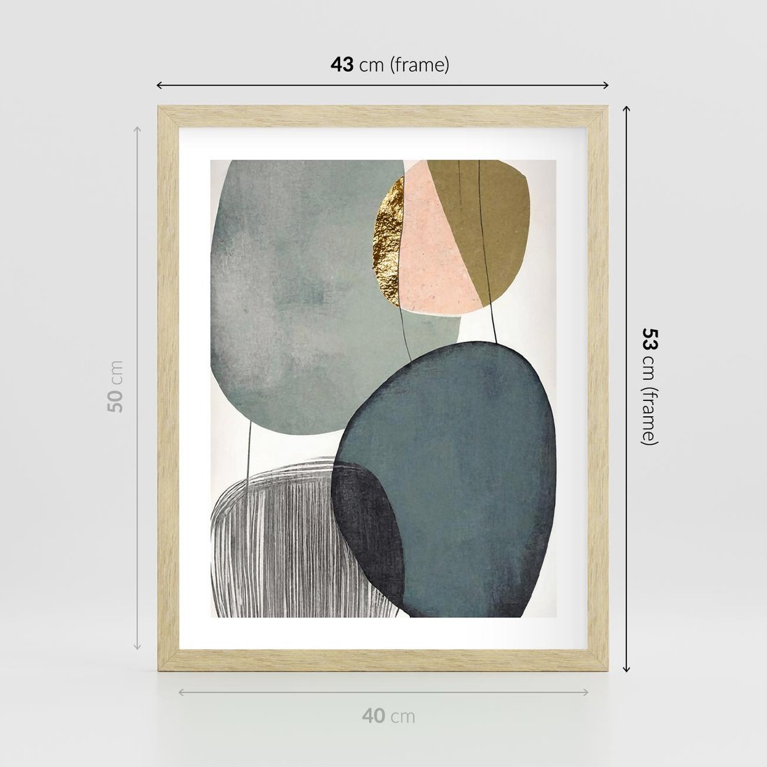 Plakat w ramie 40x50 - Przenikające Formy Duszy - abstrakcyjny obraz, geometryczne obłe formy - rama drewno