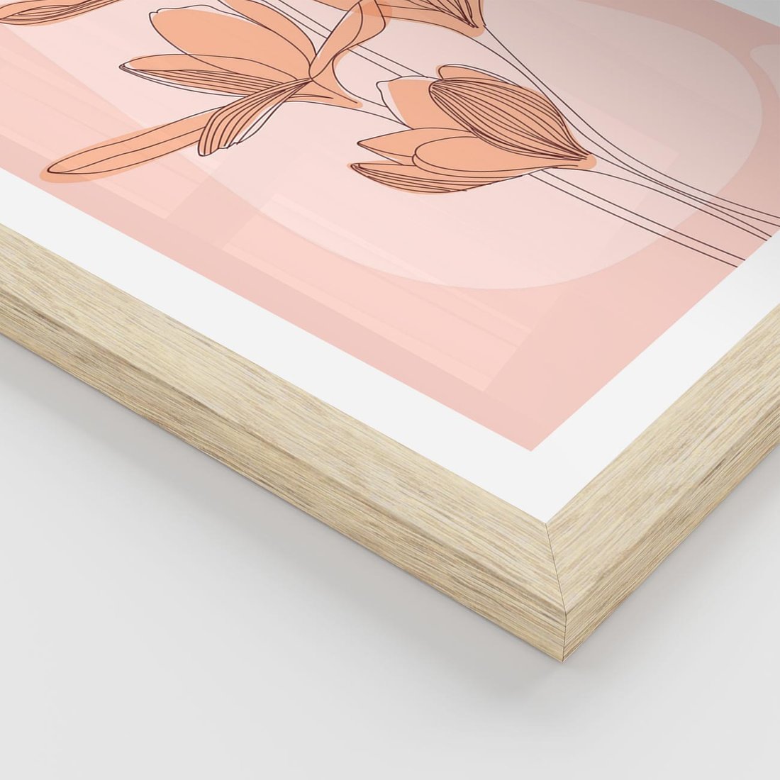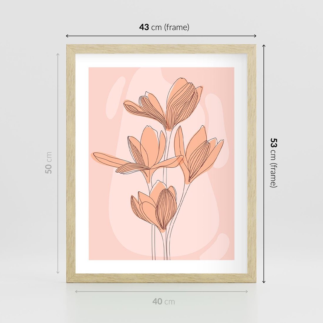Plakat w ramie 40x50 - Przenikające Kształty - minimalistyczny plakat, pudrowe kwiaty - rama drewno