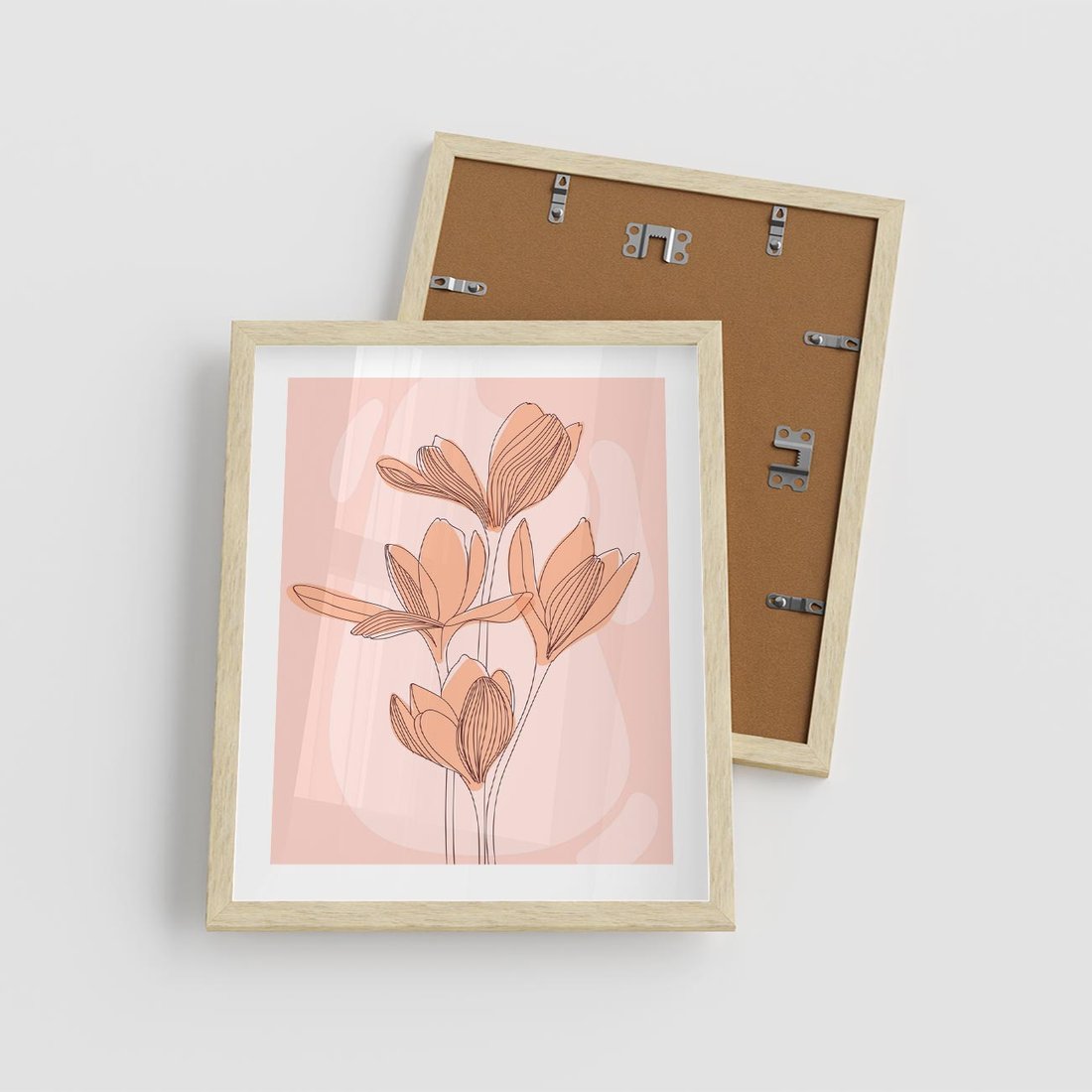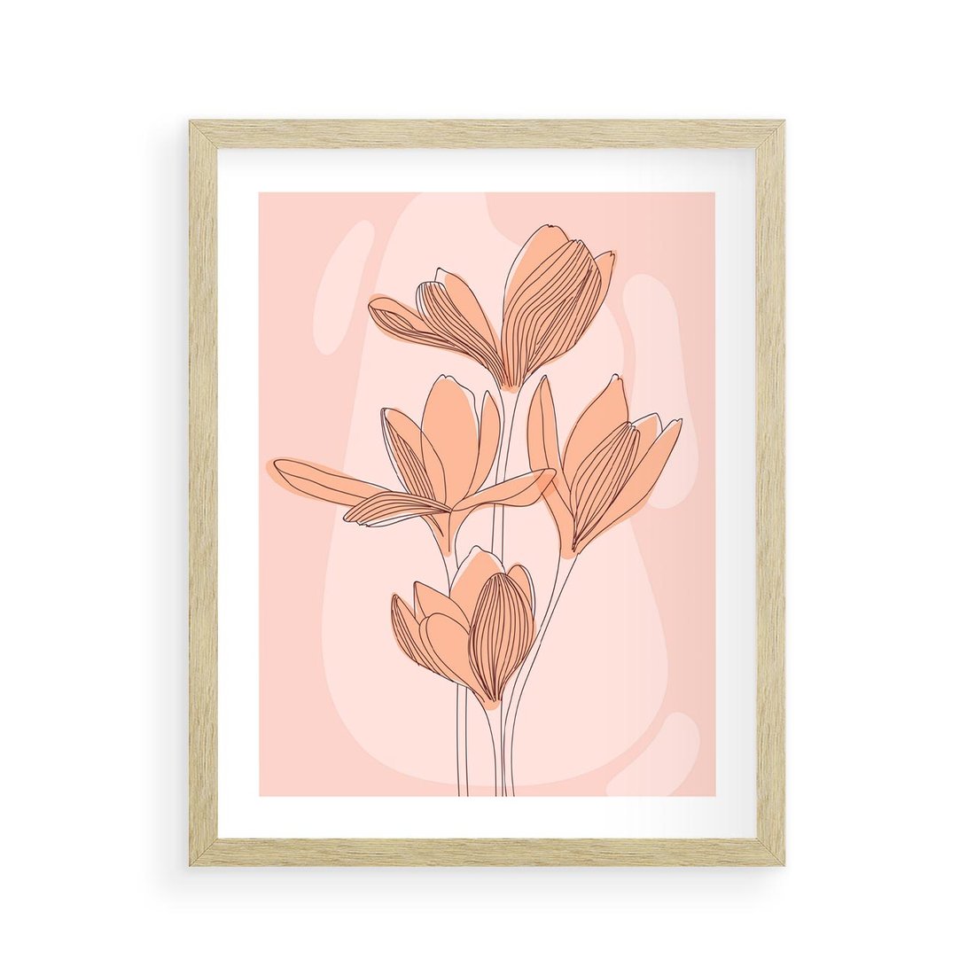 Nasz minimalistyczny plakat ukazuje pudrowe kwiaty z delikatnym konturem. To wyjątkowe dzieło sztuki emanuje subtelnością i prostotą, dodając elegancji do przestrzeni.