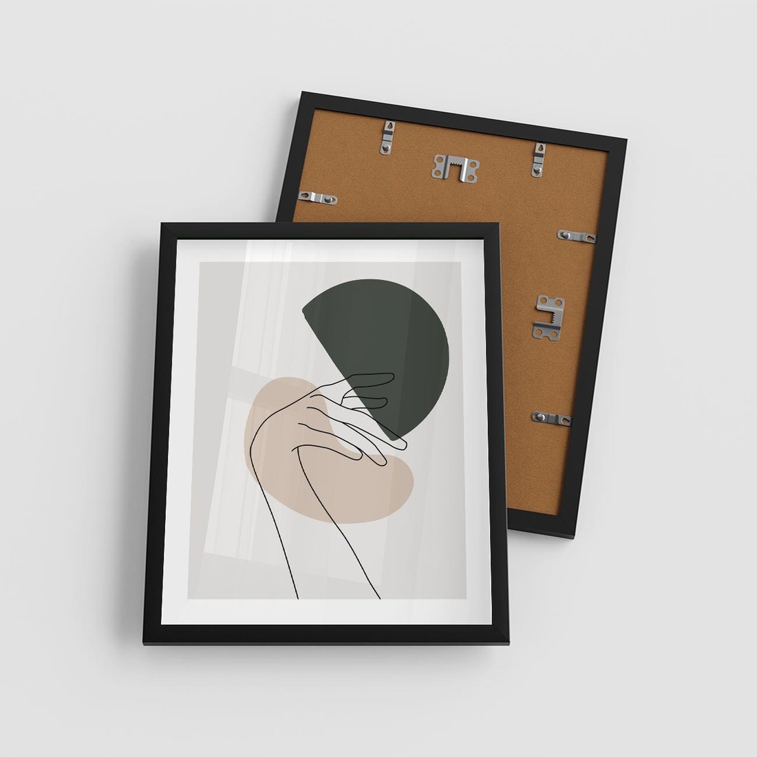 Plakat w ramie 40x50 - Przenikające Kształty - szkic jedną linią, one line - rama czarna