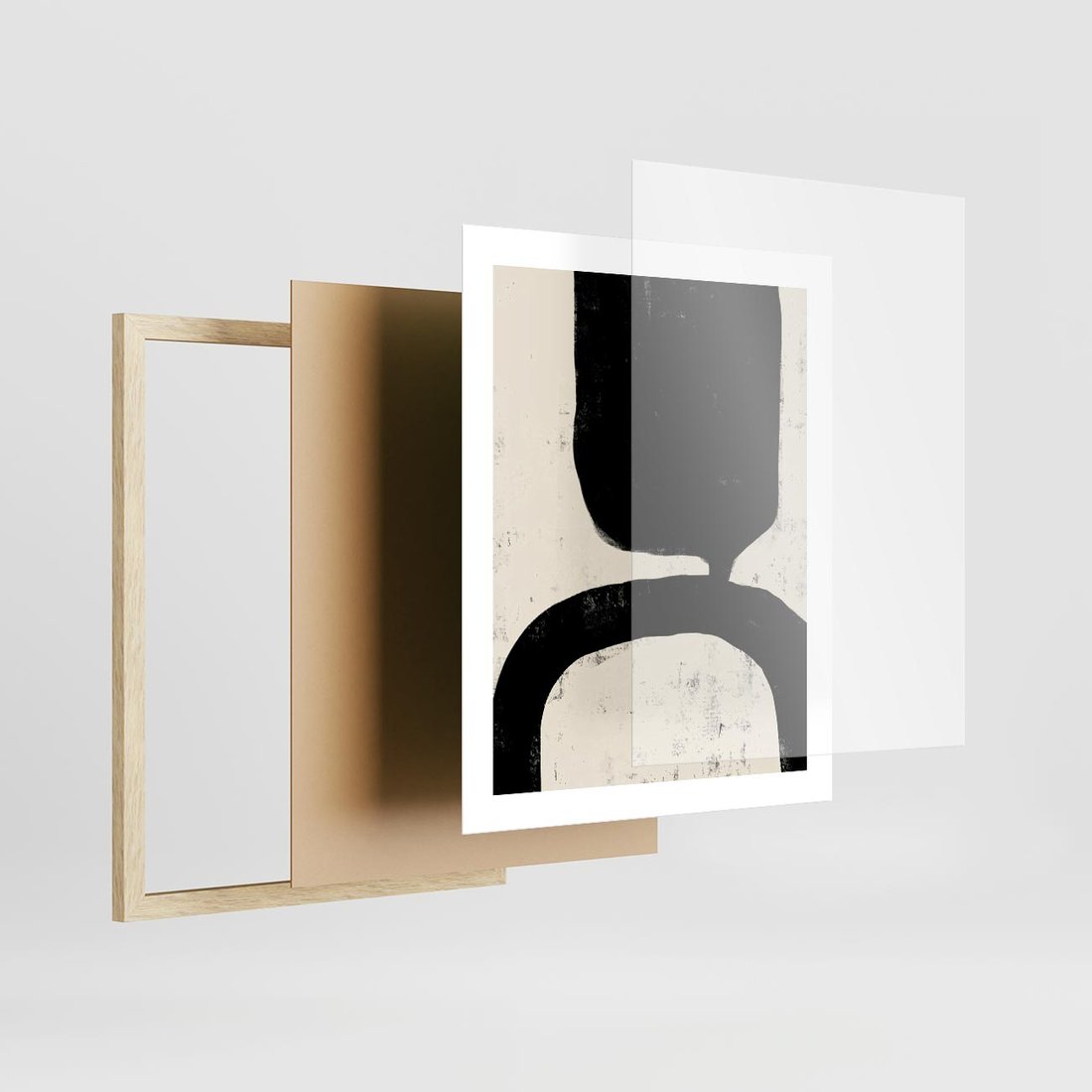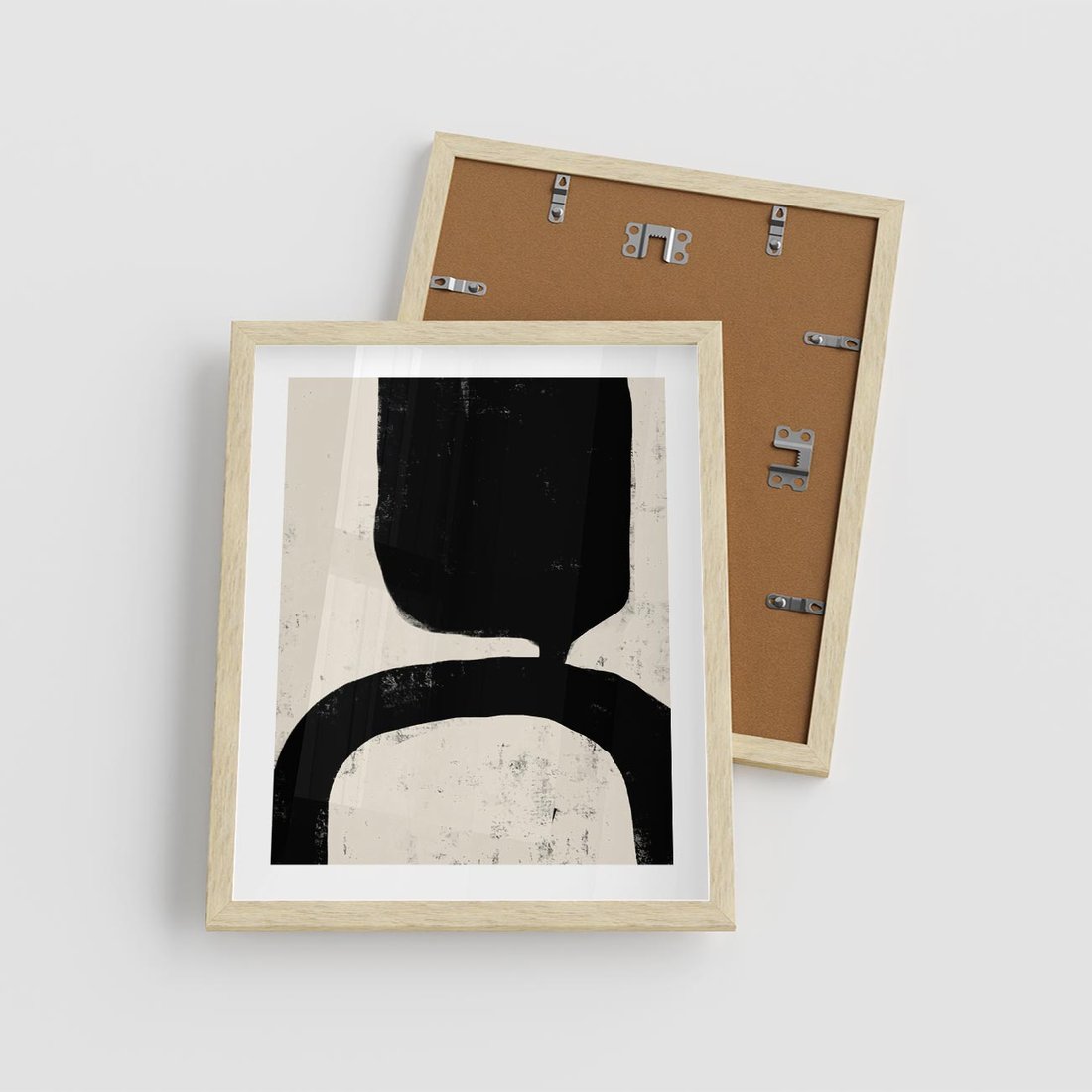 Ta abstrakcyjna sztuka w minimalistycznym stylu skupia się na kontrastach czerni i bieli, tworząc nieregularne kształty, które emanują dramaturgią. To doskonały dodatek do nowoczesnych przestrzeni, zachwycając swoją wyrazistością i subtelnością.