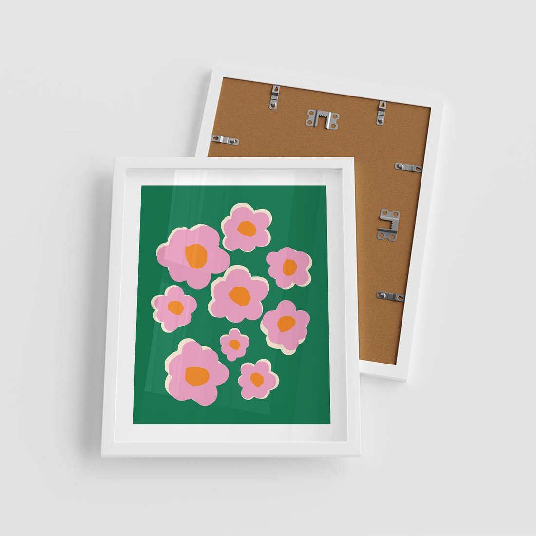 Ten abstrakcyjny plakat w boho stylu przenosi naturę do Twojego salonu, łącząc intensywną zieleń i róż z subtelnie ukazanymi kwiatowymi motywami. Tworzy on niepowtarzalną atmosferę w przestrzeni, zachęcając do relaksu i podziwiania piękna otaczającego świata.