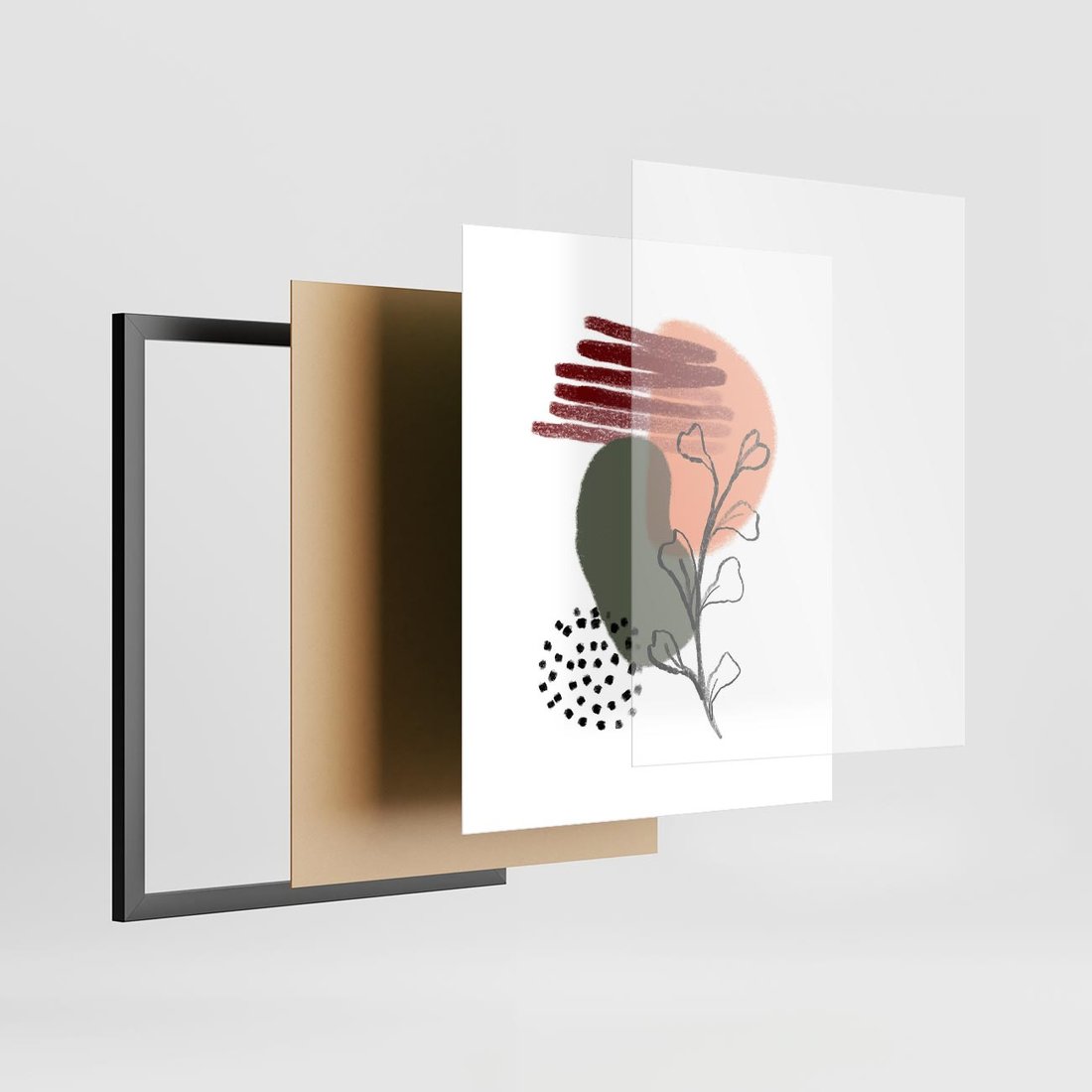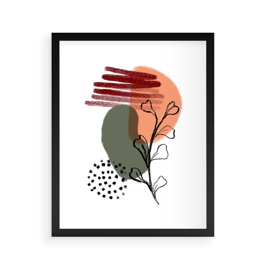 Plakat w ramie 40x50 - Przenikające Widzenia - abstrakcyjna sztuka, liście - rama czarna