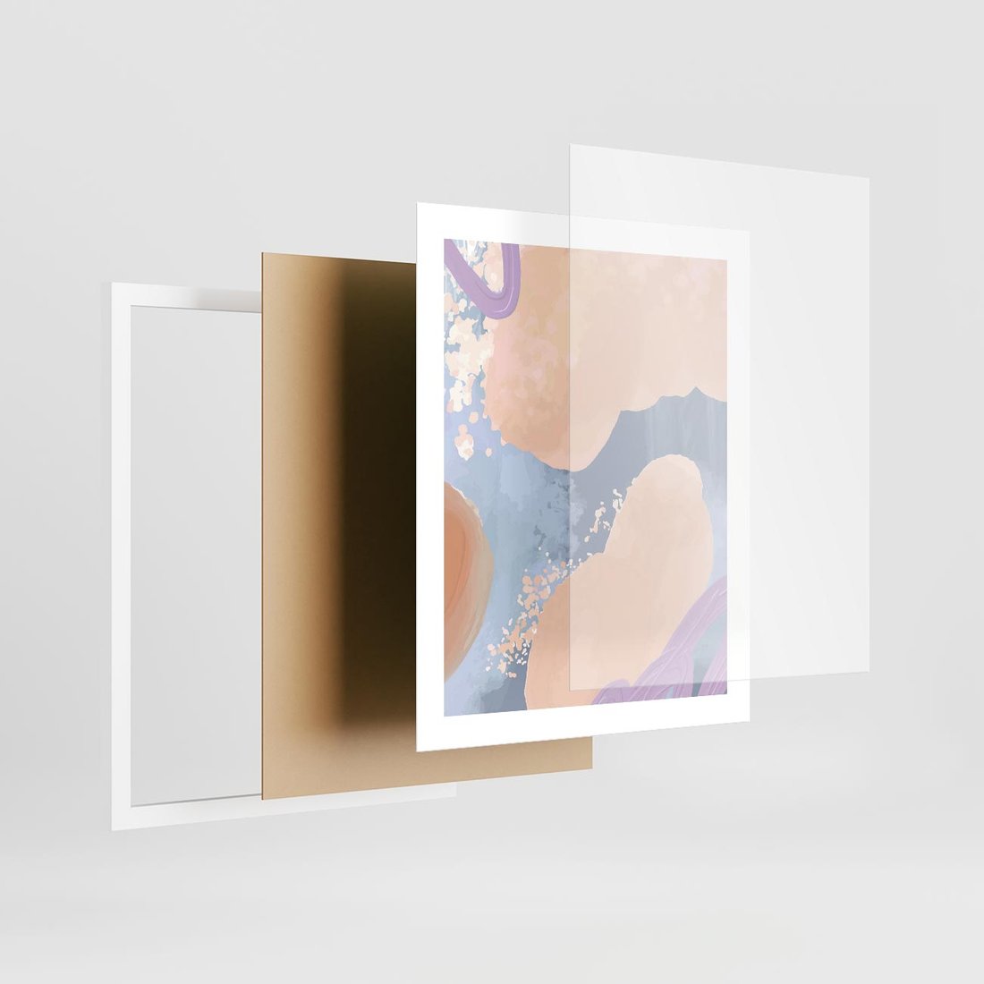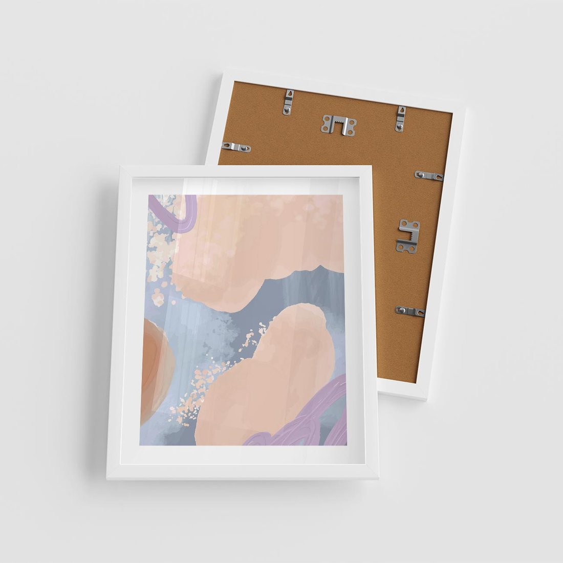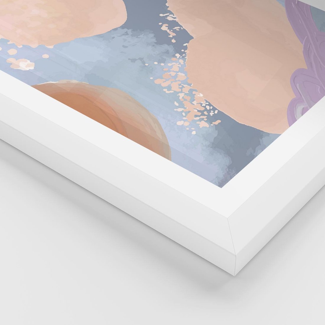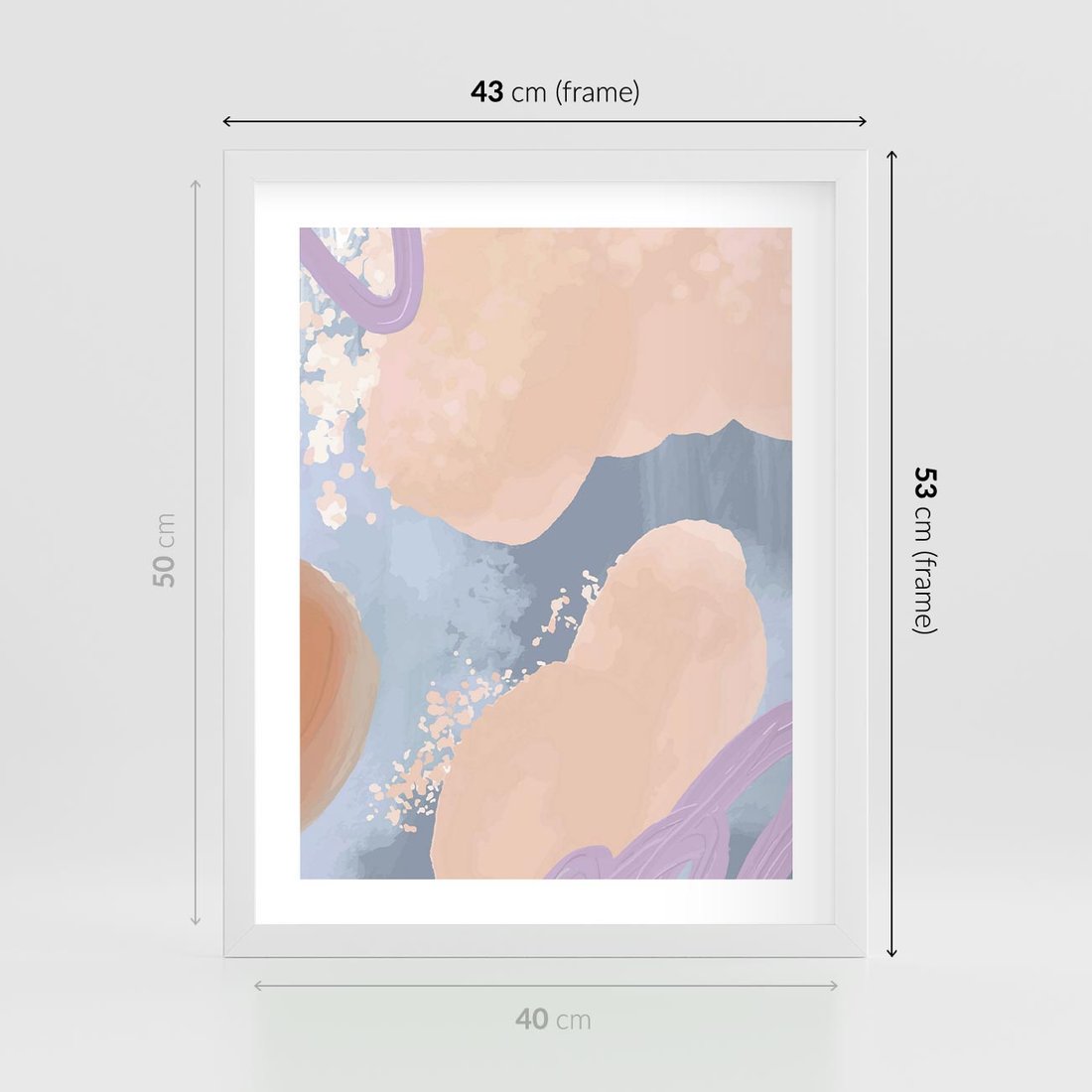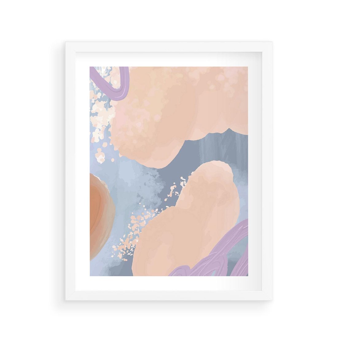 Plakat w ramie 40x50 - Przenikanie Niecodziennych Form - abstrakcyjne akwarelowe plamy, pastele - rama biała