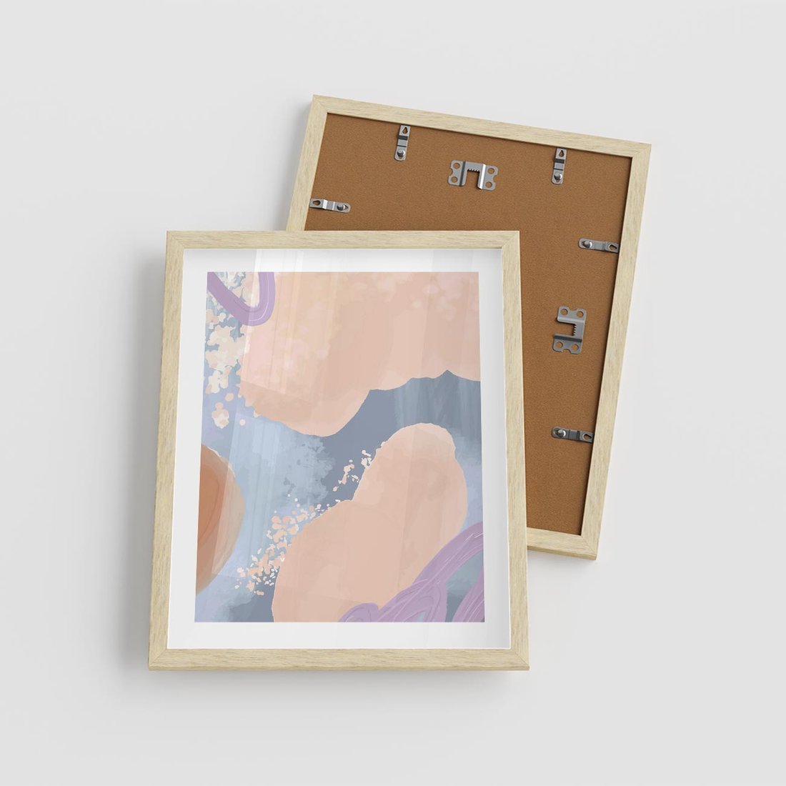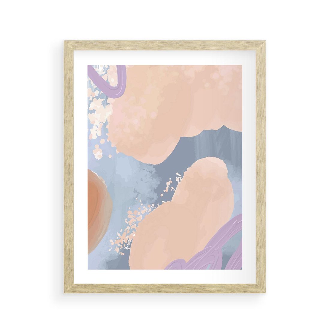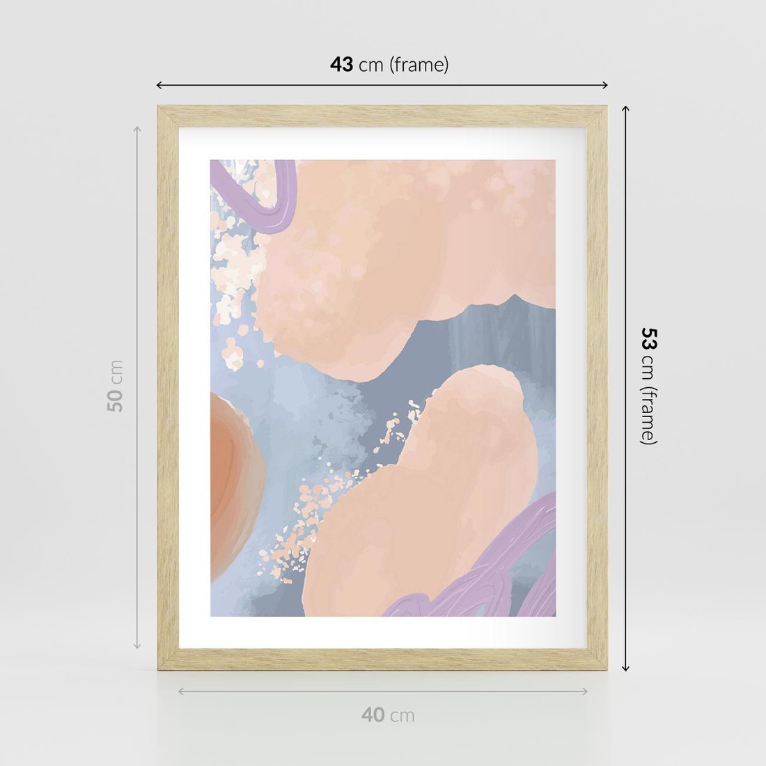 Plakat w ramie 40x50 - Przenikanie Niecodziennych Form - abstrakcyjne akwarelowe plamy, pastele - rama drewno