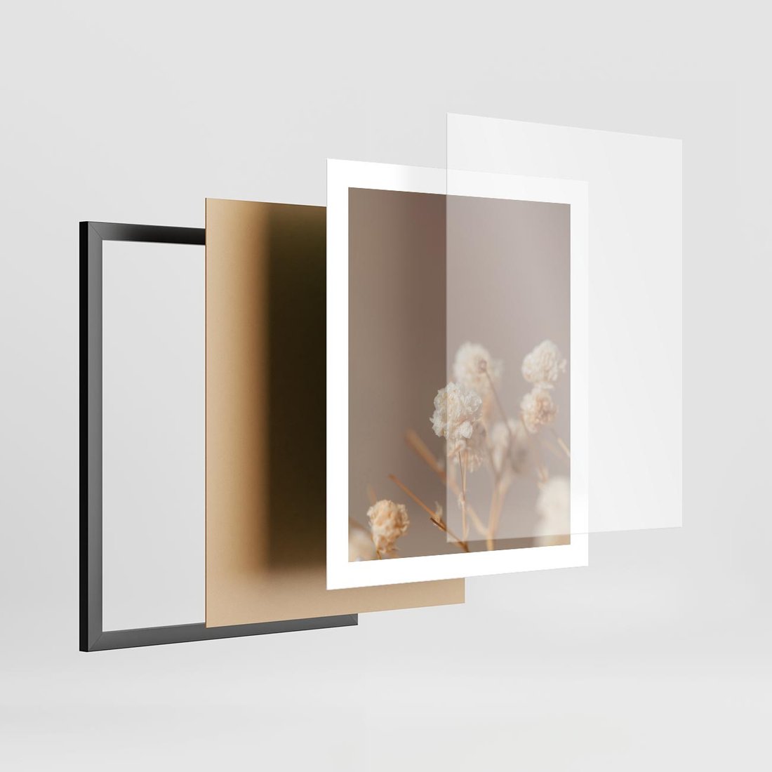 Plakat w ramie 40x50 - Przezroczyste piękno - gipsówka, suche - rama czarna