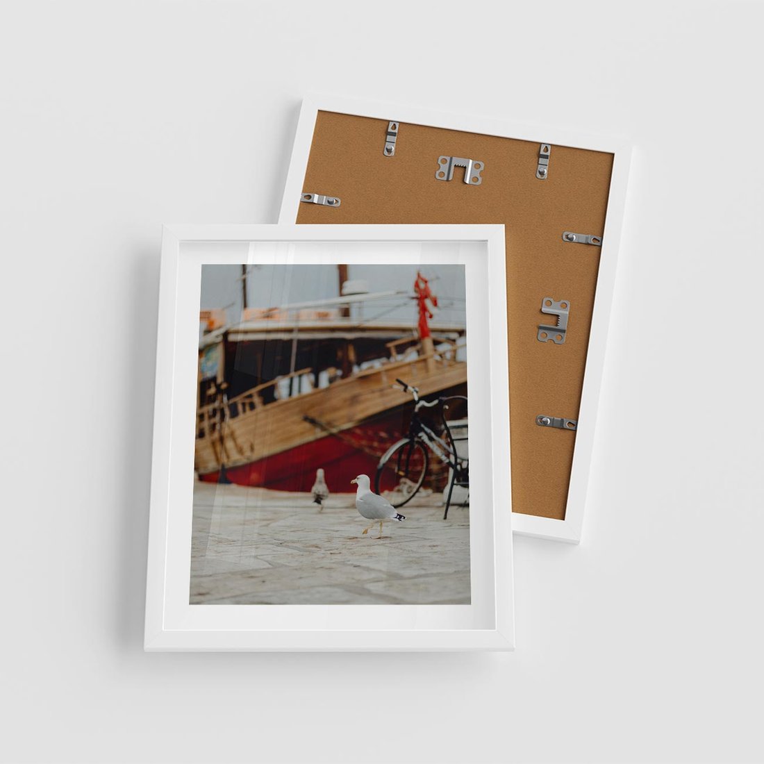 Plakat w ramie 40x50 - Przygoda na Horyzoncie - port, statek - rama biała