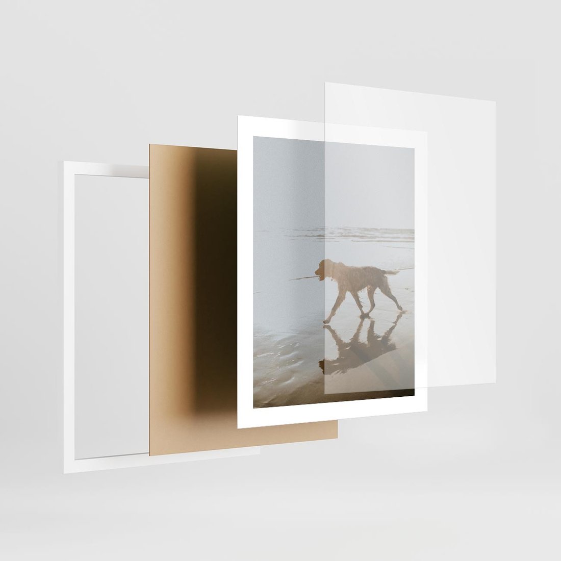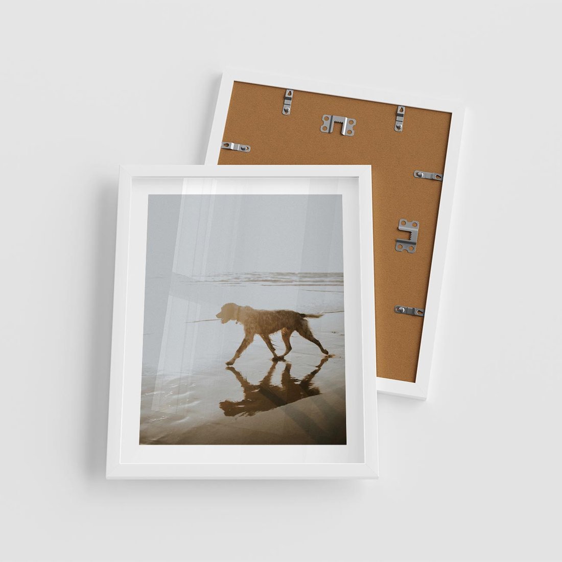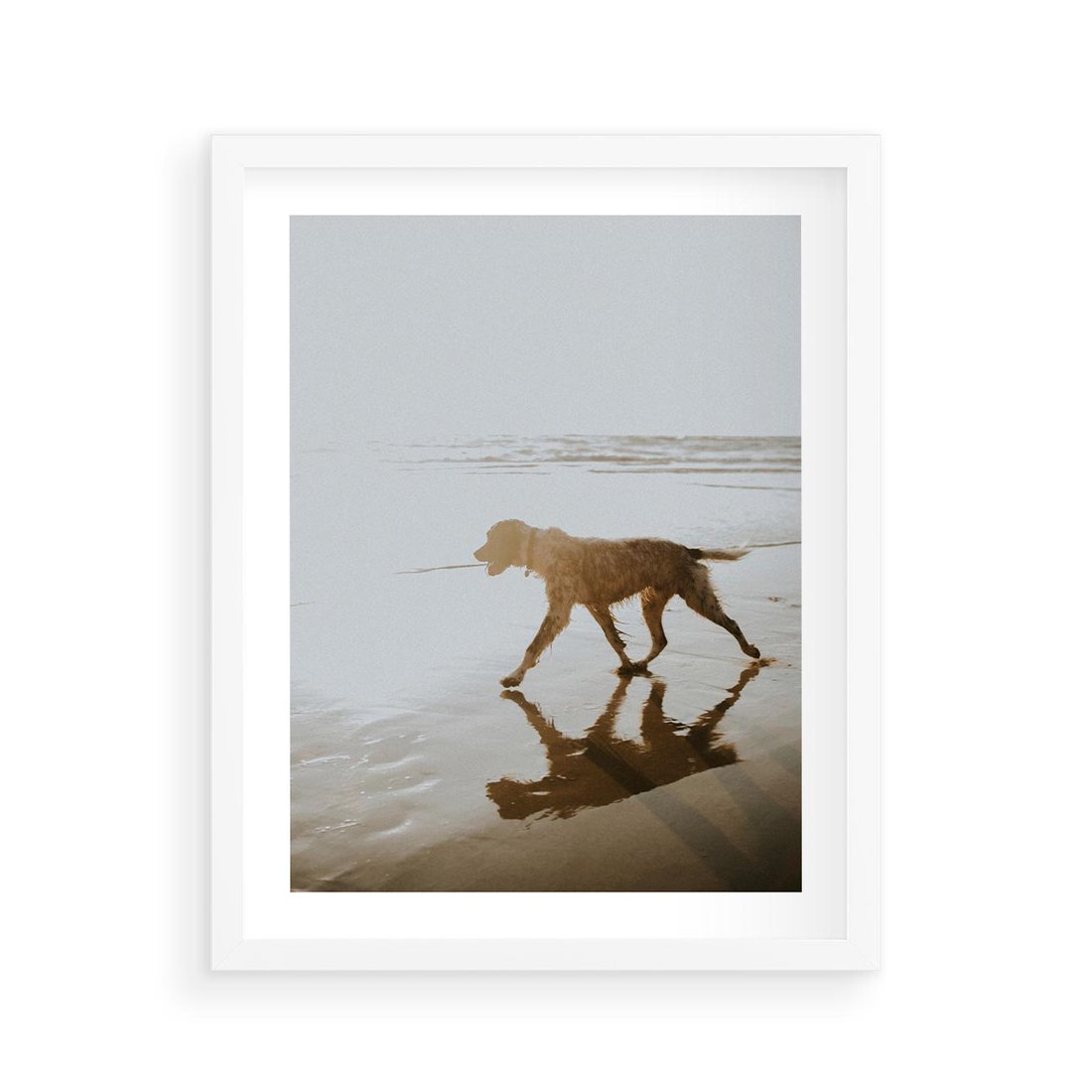 Plakat w ramie 40x50 - Przyjaciel na Plaży - pies, na plaży - rama biała
