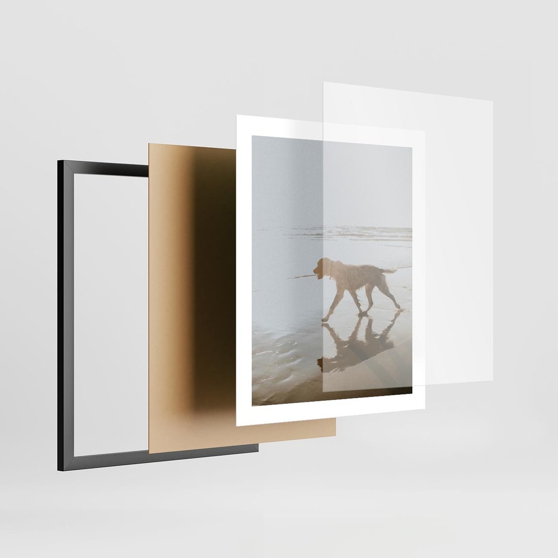 Plakat w ramie 40x50 - Przyjaciel na Plaży - pies, na plaży - rama czarna