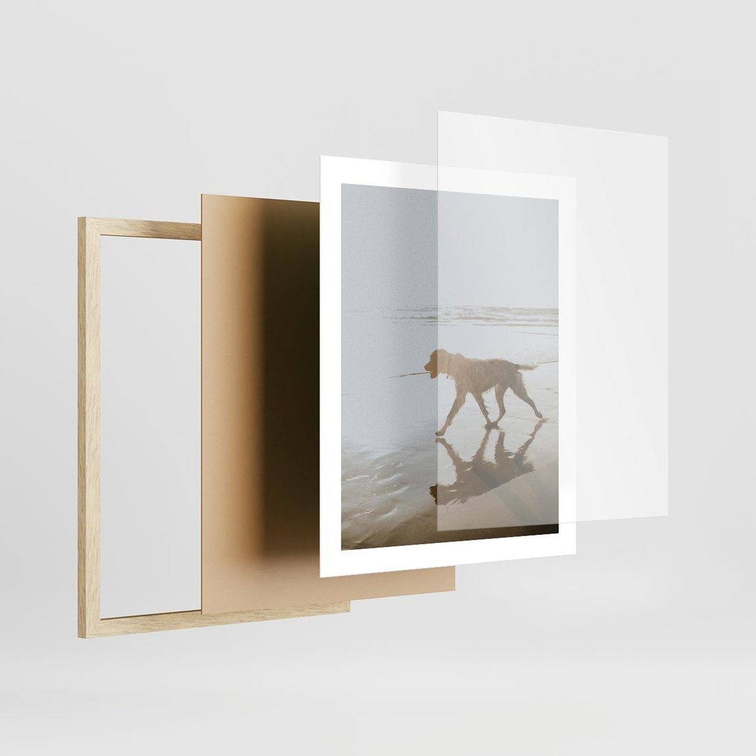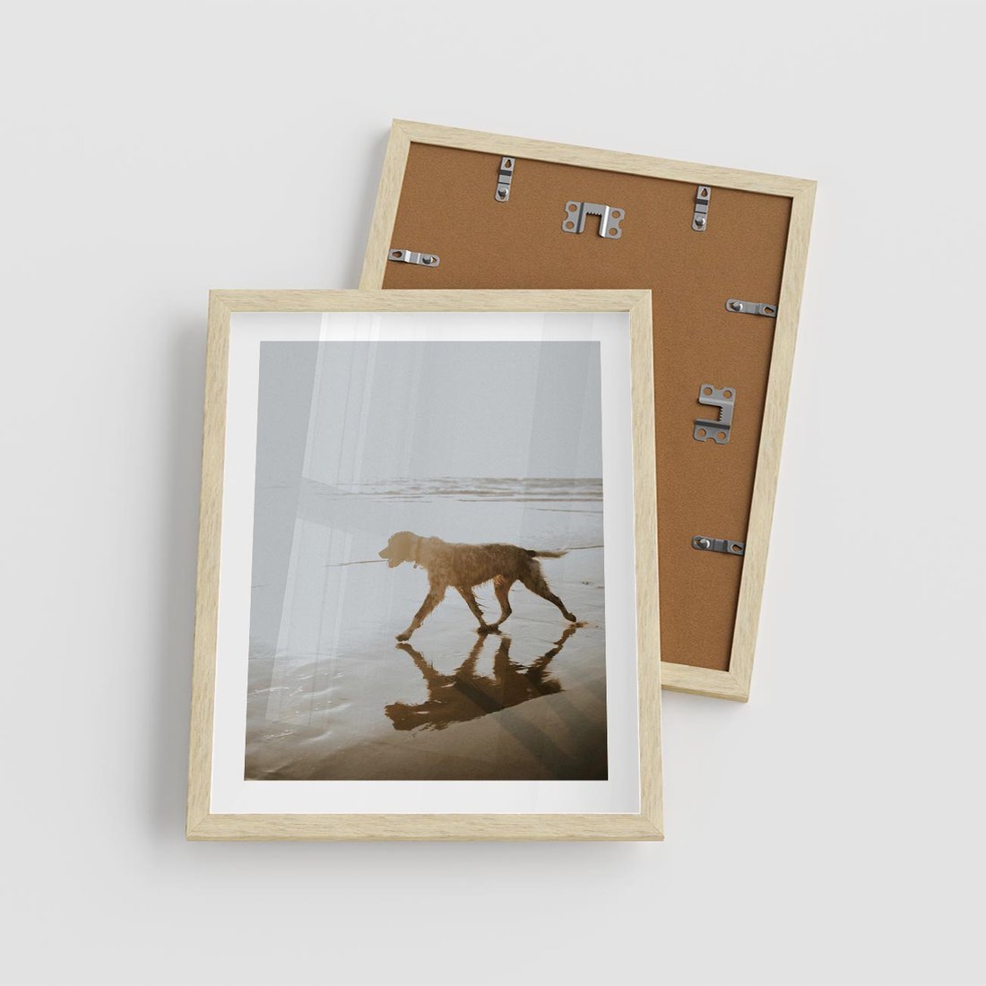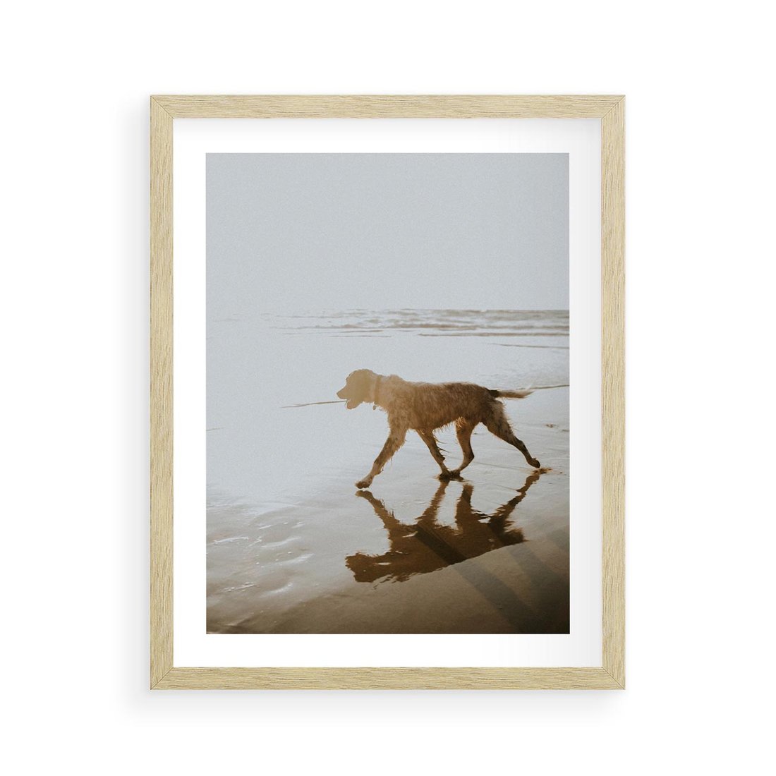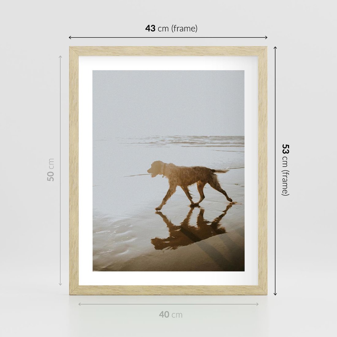 Plakat w ramie 40x50 - Przyjaciel na Plaży - pies, na plaży - rama drewno