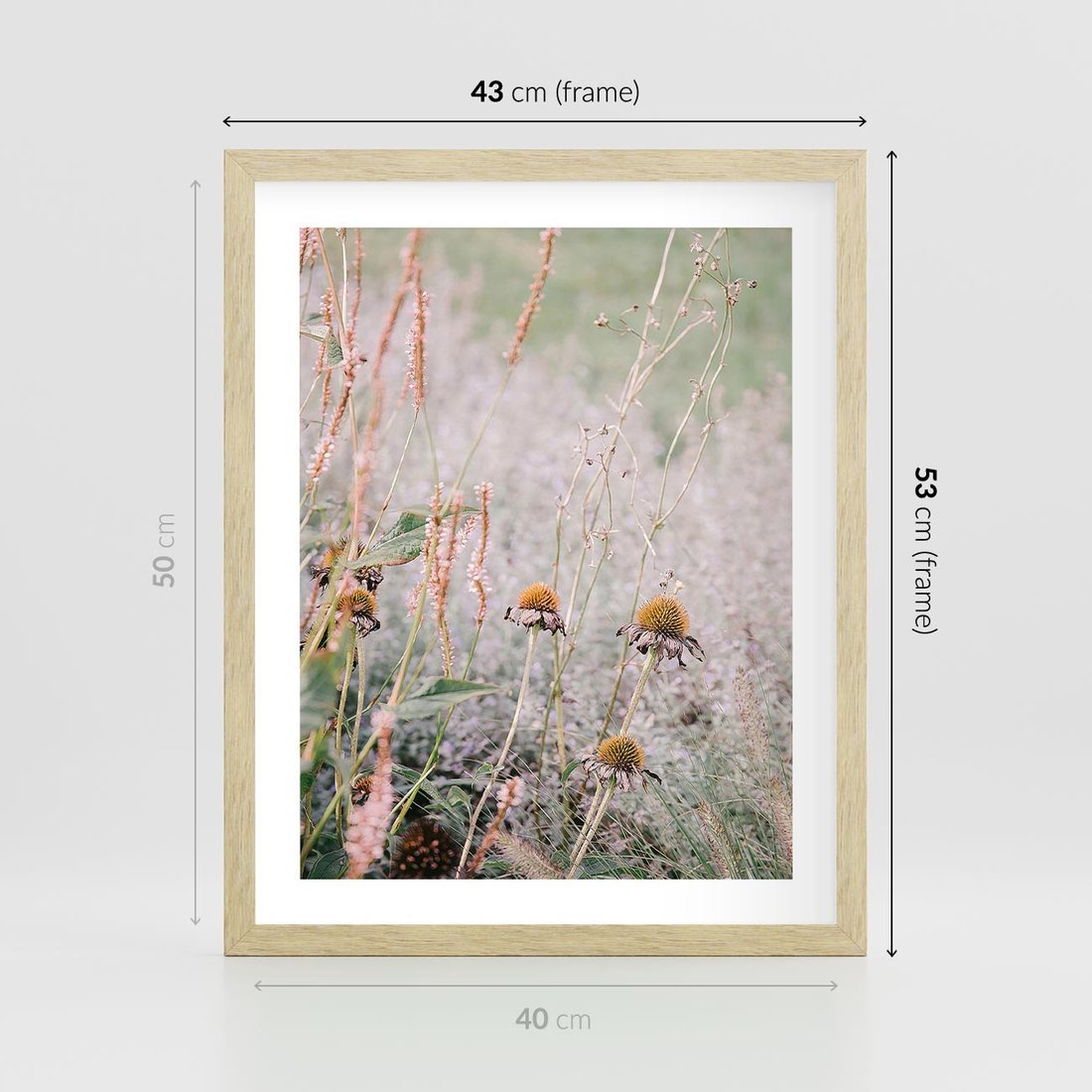 Plakat w ramie 40x50 - Przyroda w Pełnym Blasku: Kolorowa łąka z Kwiatami - łąka, kwiaty na łące - rama drewno