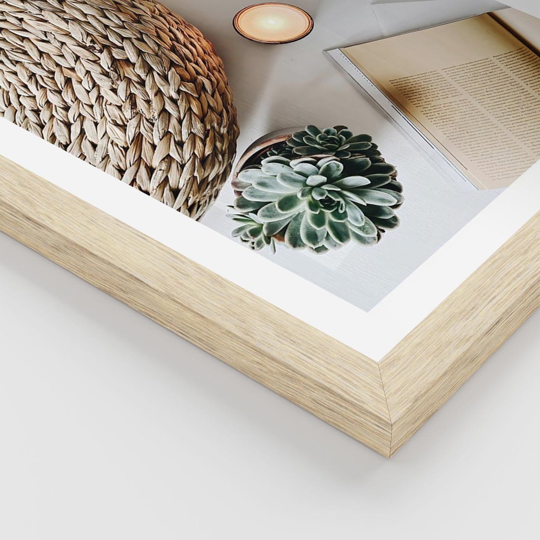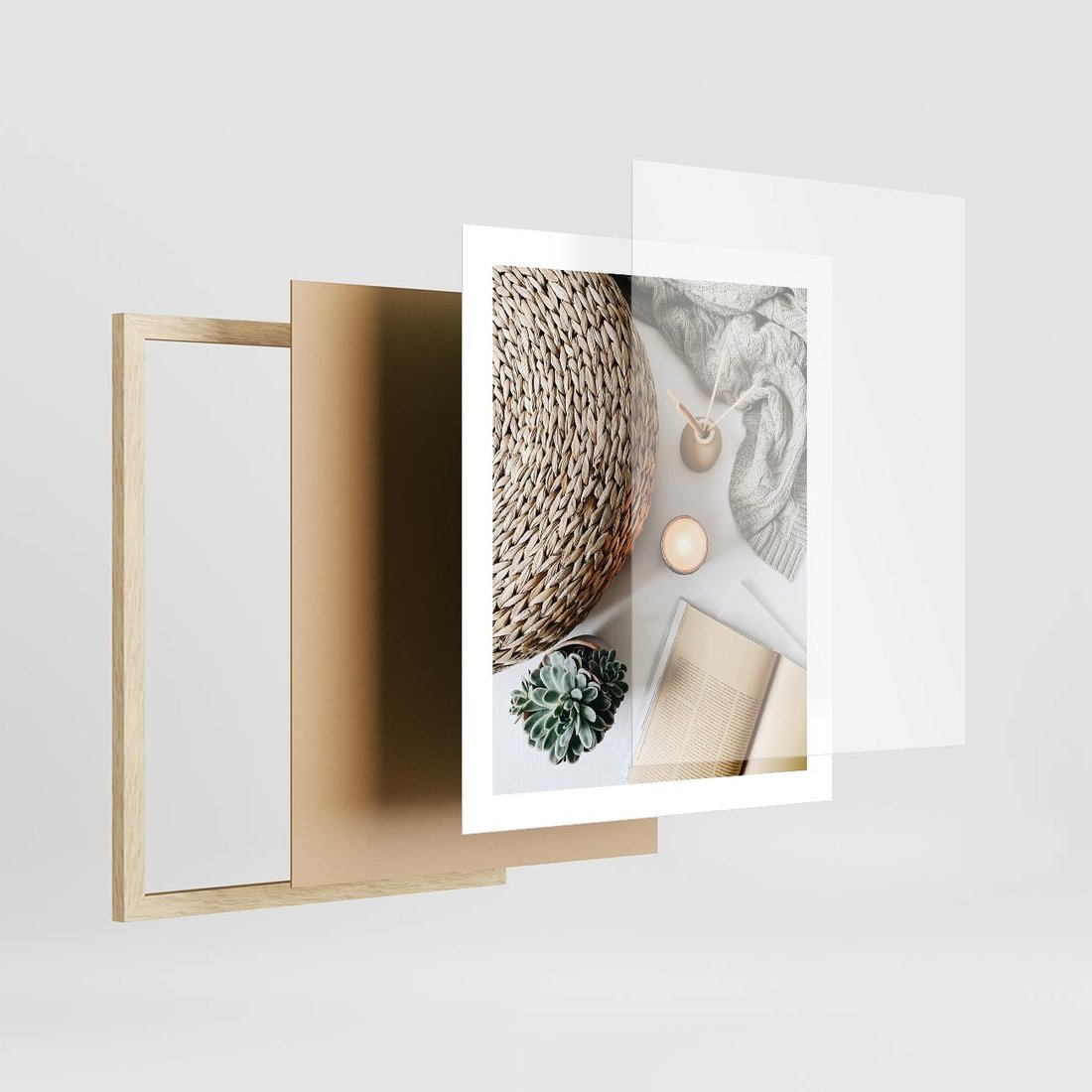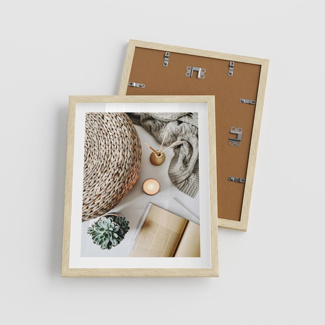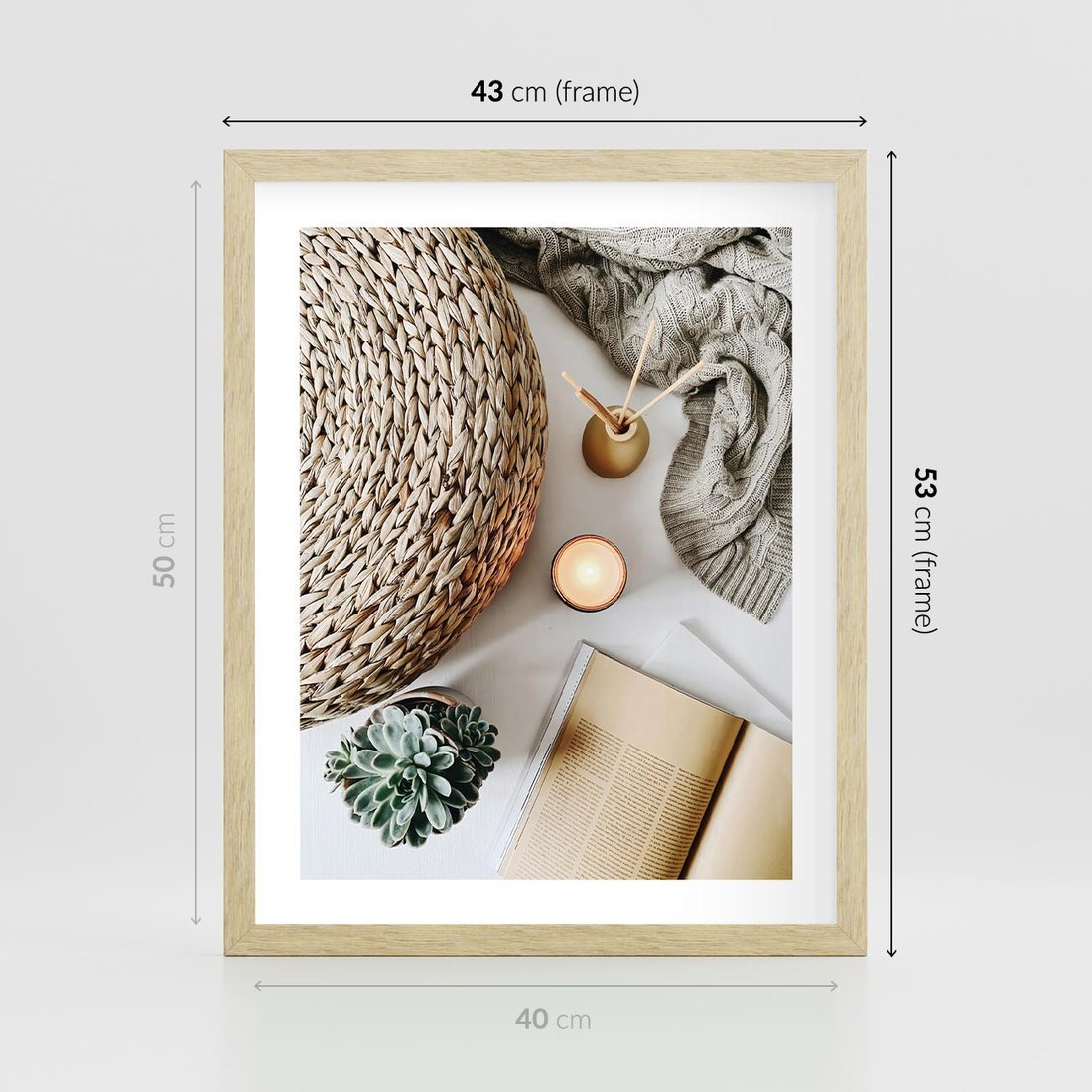 Plakat w ramie 40x50 - Przytulna Kompozycja Lifestyle - kompozycja lifestyle, wiklina - rama drewno