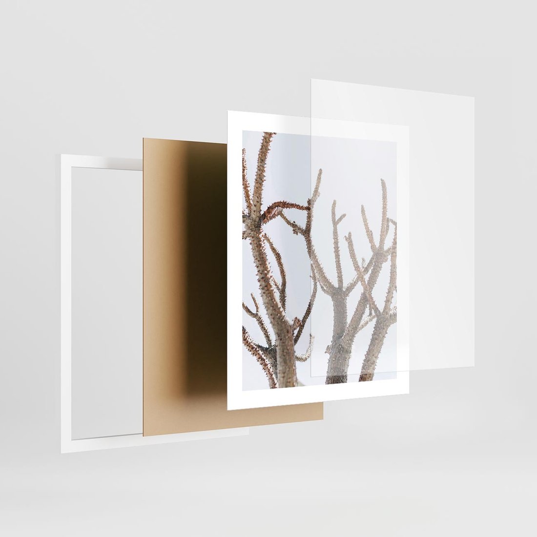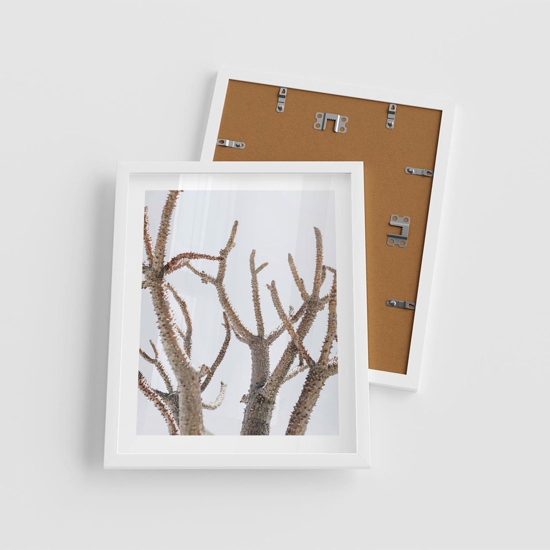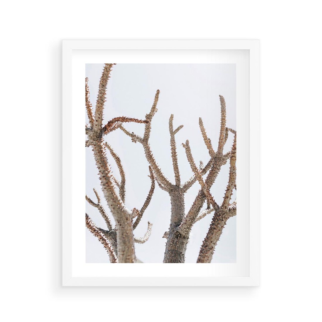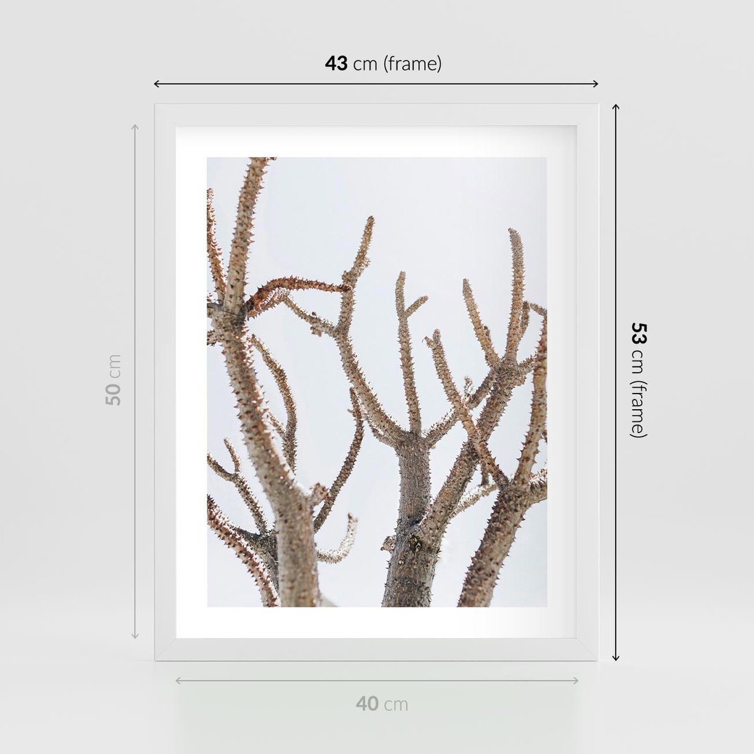 Plakat w ramie 40x50 - Pustynna Harmonia Gałęzi - pustynna roślina, suche gałęzie - rama biała