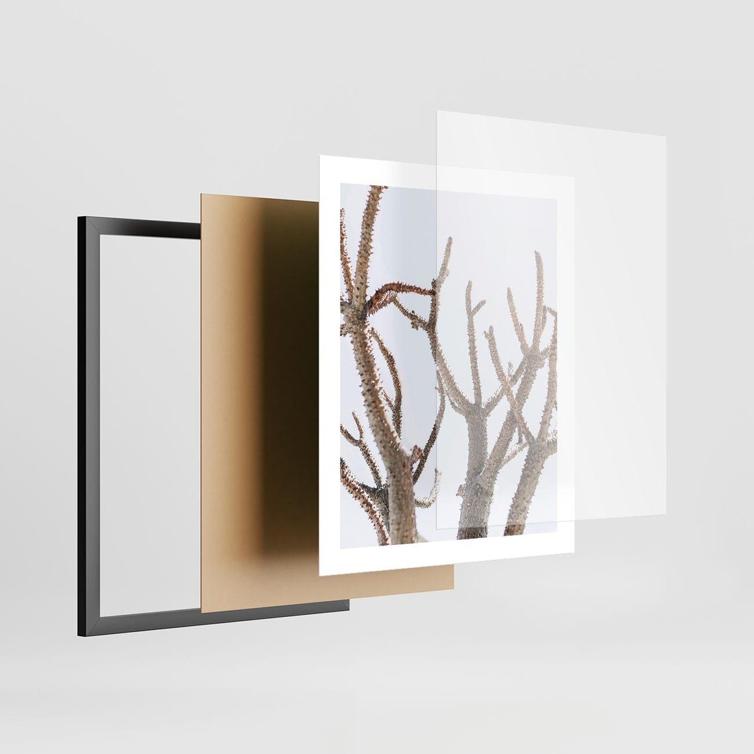 Plakat w ramie 40x50 - Pustynna Harmonia Gałęzi - pustynna roślina, suche gałęzie - rama czarna