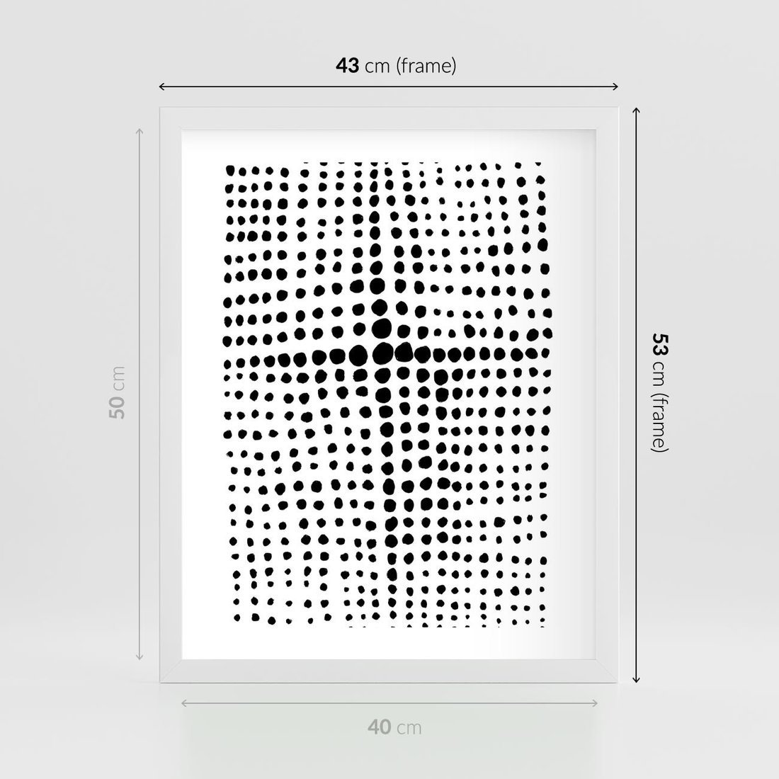 Plakat w ramie 40x50 - Refleksje Monochromatycznych Widoków - abstrakcyjna kompozycja z czarnych kropek, minimalistyczny czarno bialy plakat - rama biała