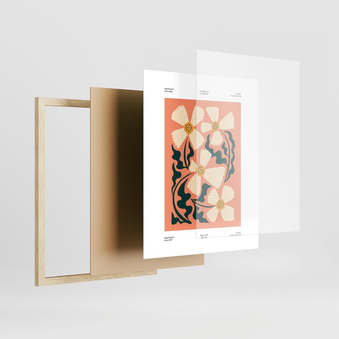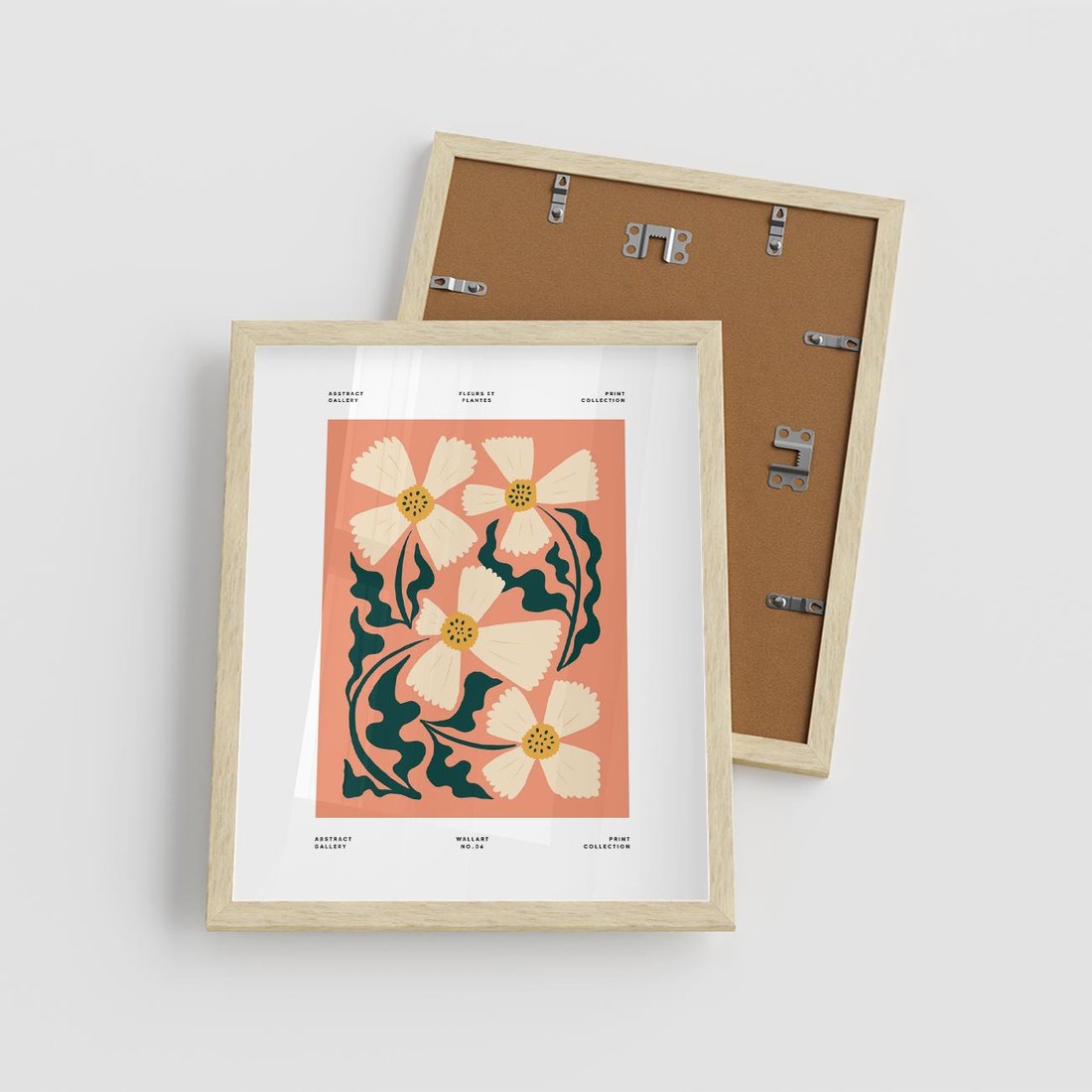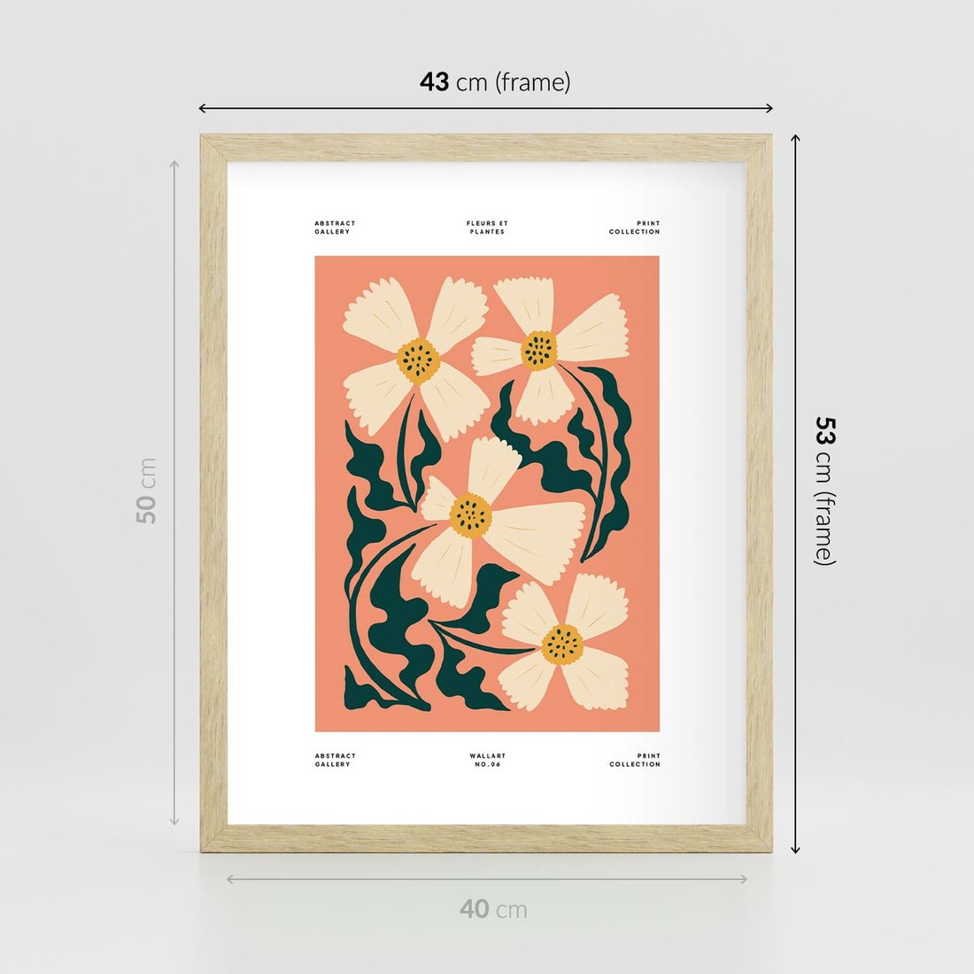 Plakat w ramie 40x50 - Refleksje w roślinnym odbiciu - kwiatowa kompozycja, minimalizm - rama drewno