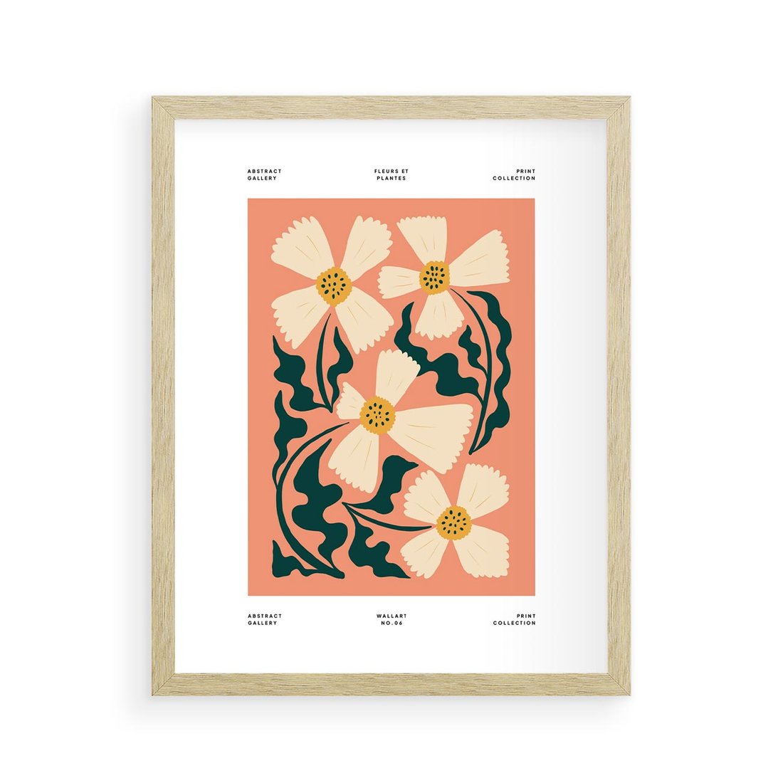 Ta minimalistyczna kompozycja przedstawia białe kwiaty na delikatnym różowym tle. To obraz, który w swojej prostocie oddaje subtelność i elegancję natury. Idealny wybór dla tych, którzy cenią spokojny minimalizm oraz chcą wprowadzić do swojego wnętrza delikatny i harmonijny akcent kwiatowy.