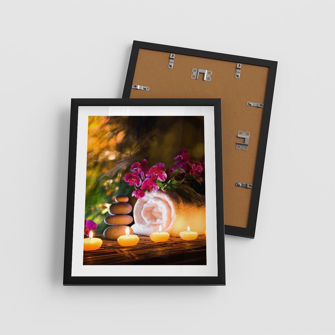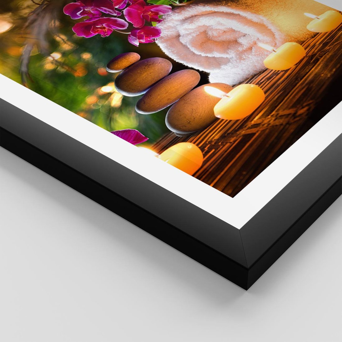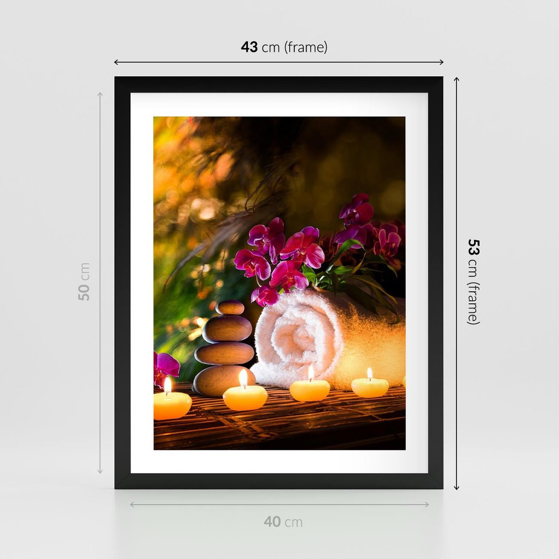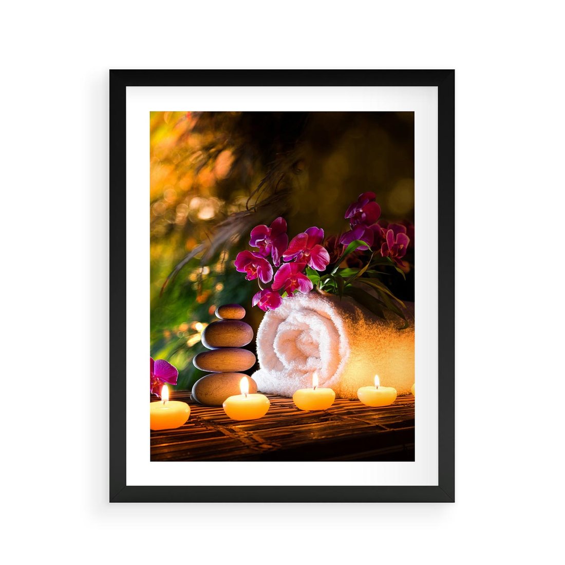 Plakat w ramie 40x50 - Relaksujące spa z płonącymi świecami - spa, świece - rama czarna