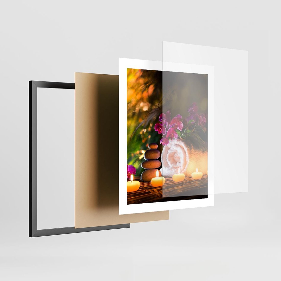 Przenieś się w atmosferę relaksu dzięki temu ujmującemu obrazowi przedstawiającemu spa z płonącymi świecami. Delikatne światło, ciepło i kwiaty tworzą harmonijną aurę. Ta kompozycja dodaje spokoju i odprężenia, idealna dla osób pragnących wprowadzić do swojego domu atmosferę spa i błogości.
