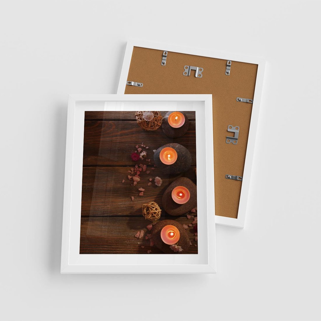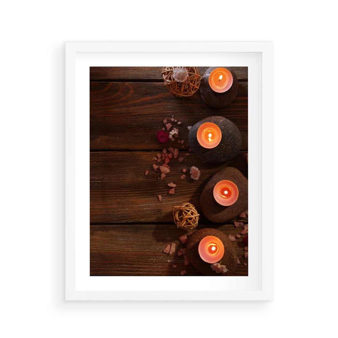 Plakat w ramie 40x50 - Relaksujące spa z pochodniami - spa, świece - rama biała
