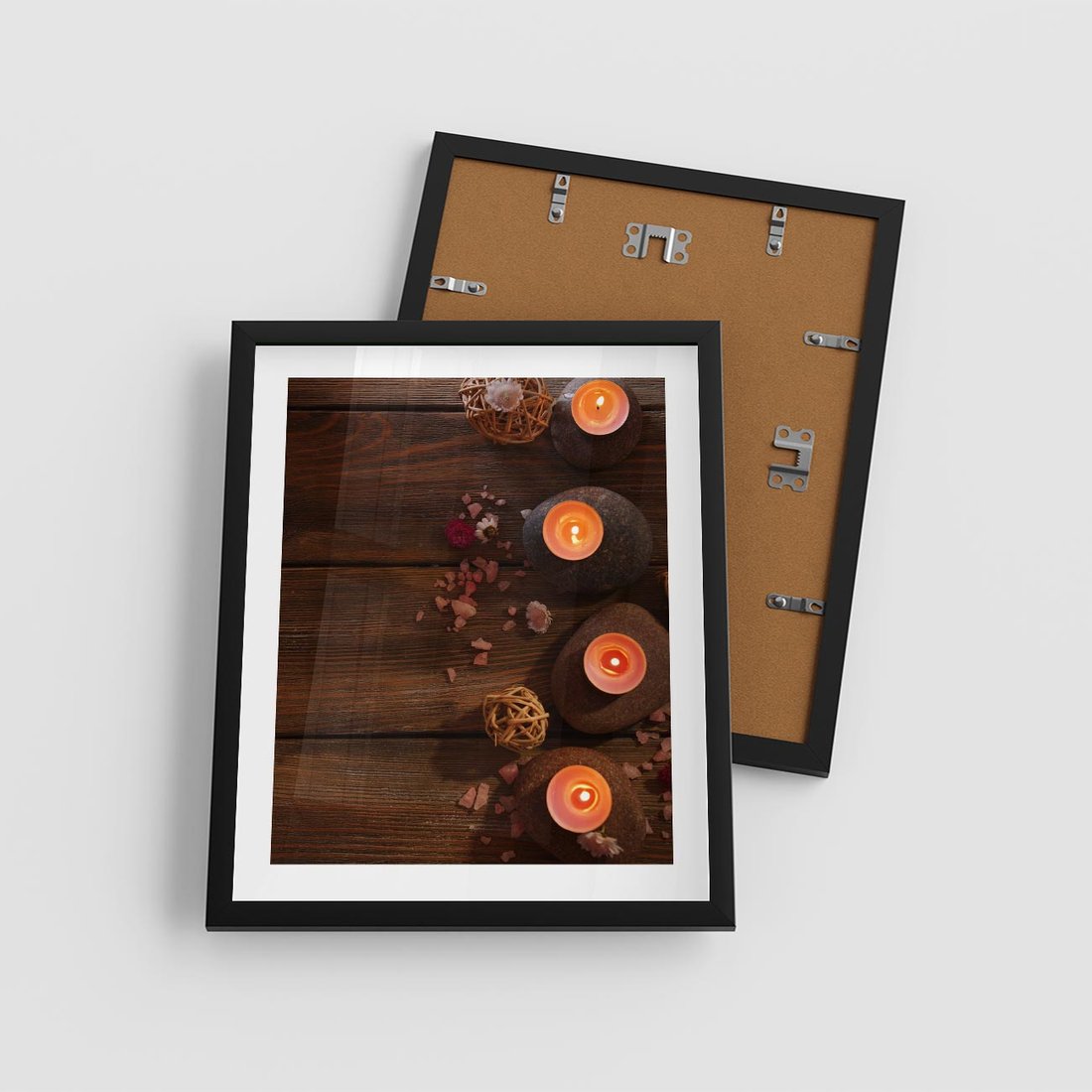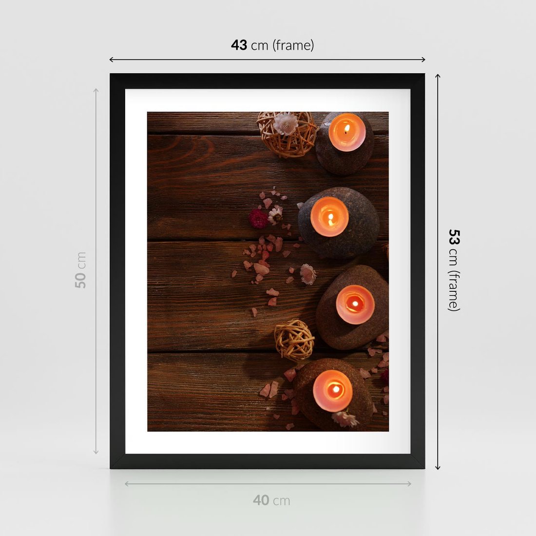 Plakat w ramie 40x50 - Relaksujące spa z pochodniami - spa, świece - rama czarna