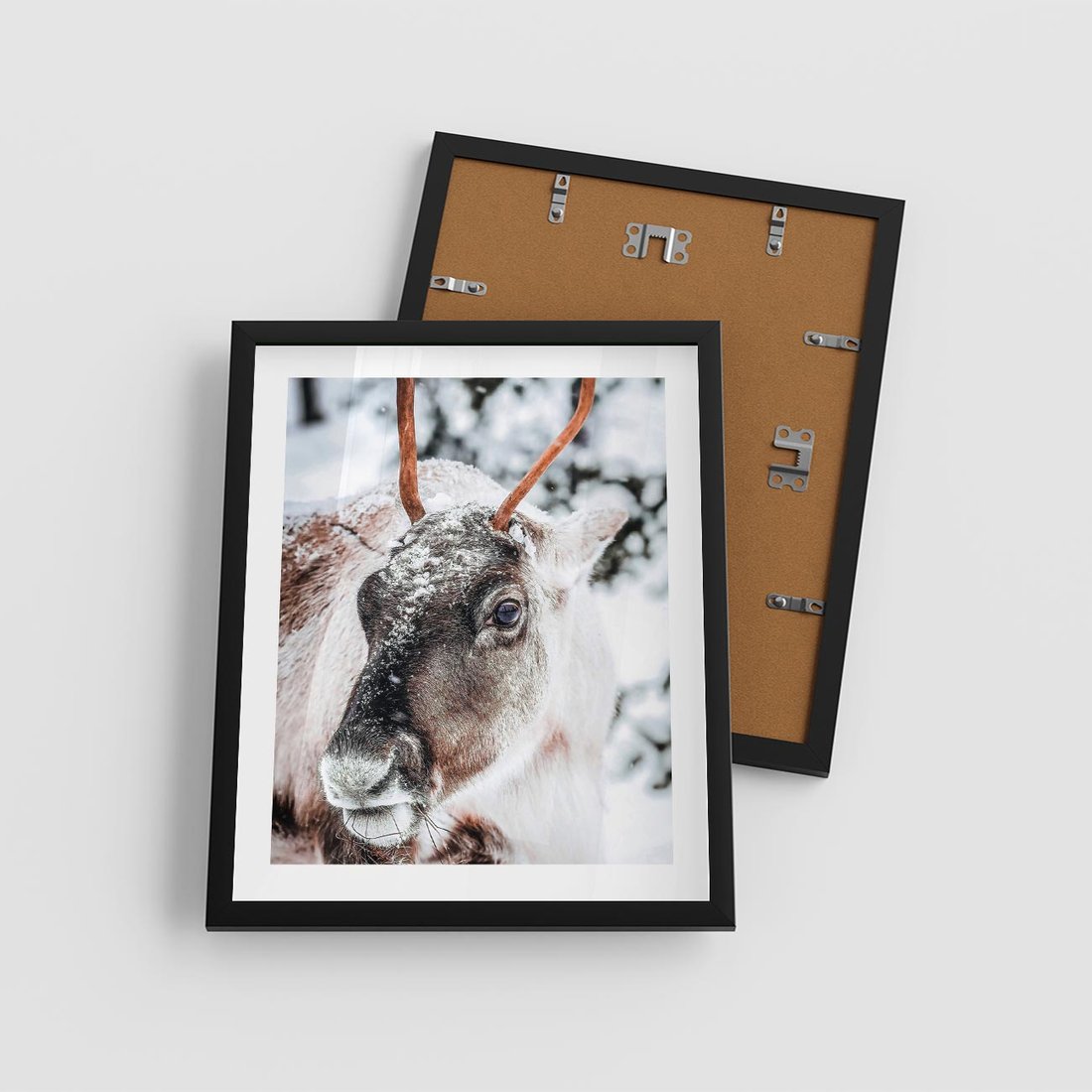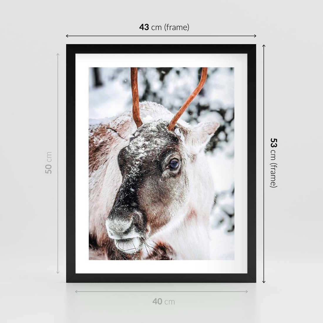 Plakat w ramie 40x50 - Renifer w Zimowej Krainie - renifer, zima - rama czarna