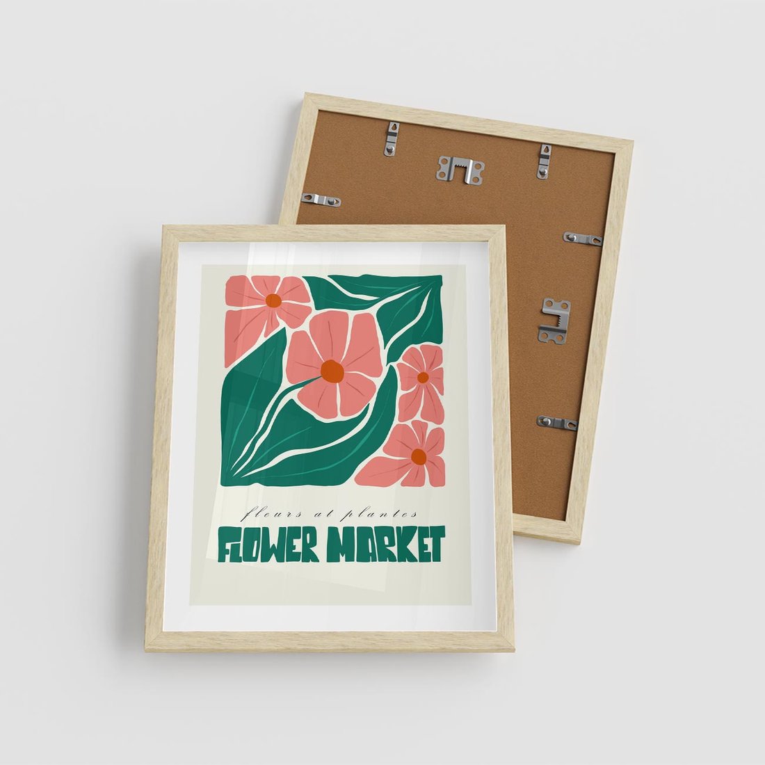 Plakat w ramie 40x50 - Retro Inspiracja - minimalistyczna kwiatowa kompozycja, pastelowe kolory - rama drewno