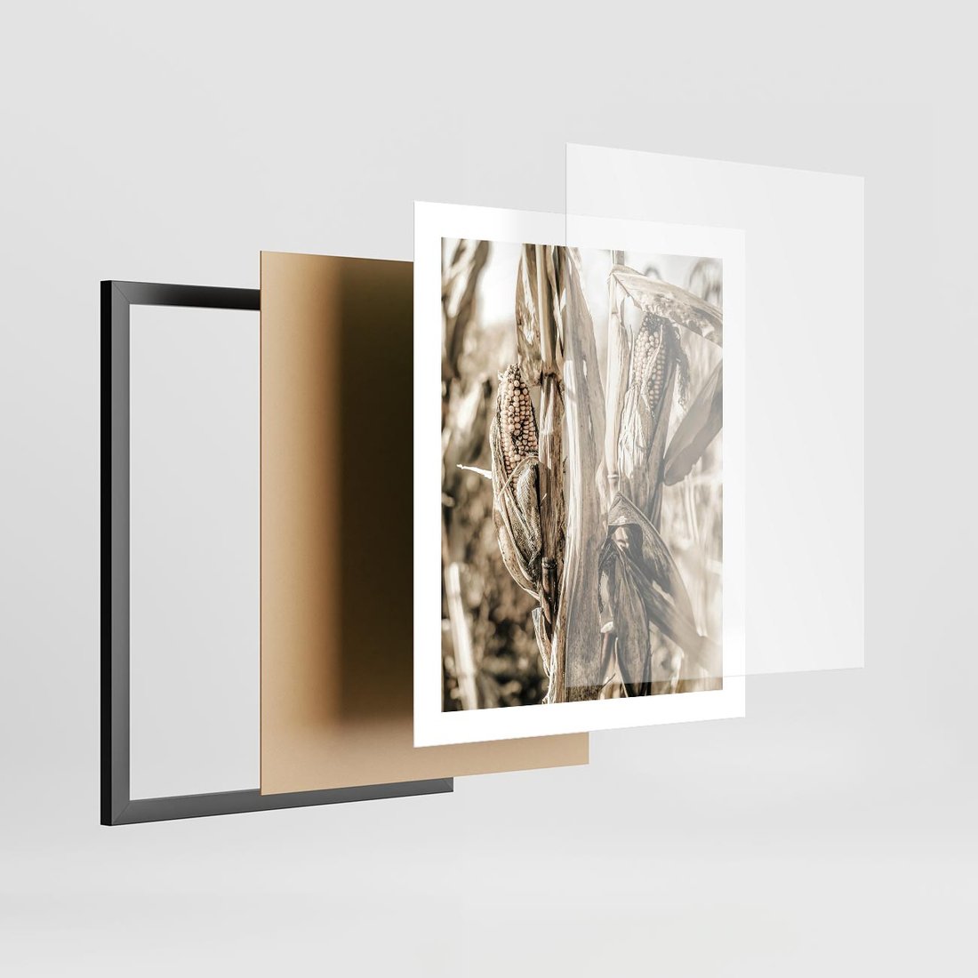 Plakat w ramie 40x50 - Retro Pole Kukurydzy - retro zdjęcie, sepia - rama czarna