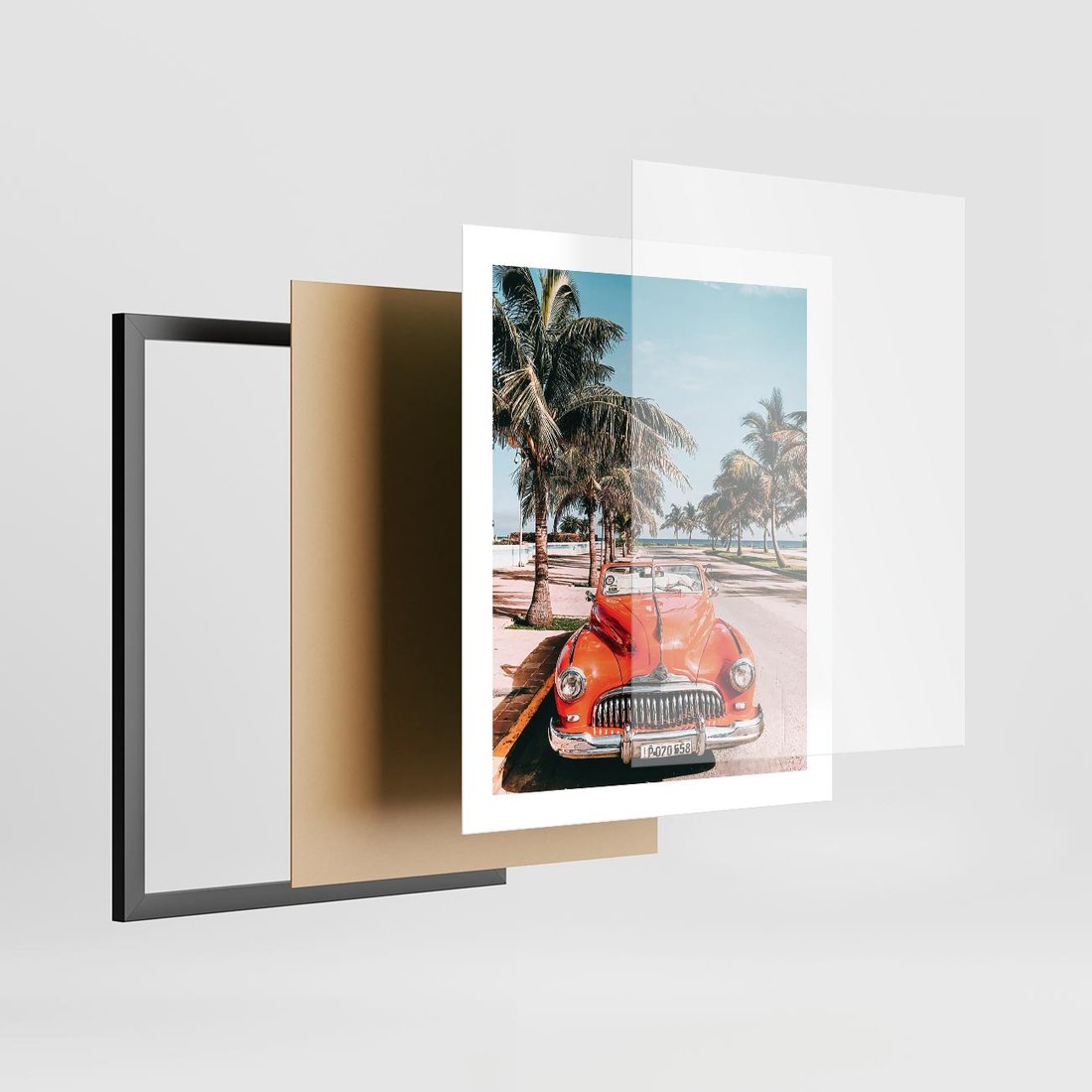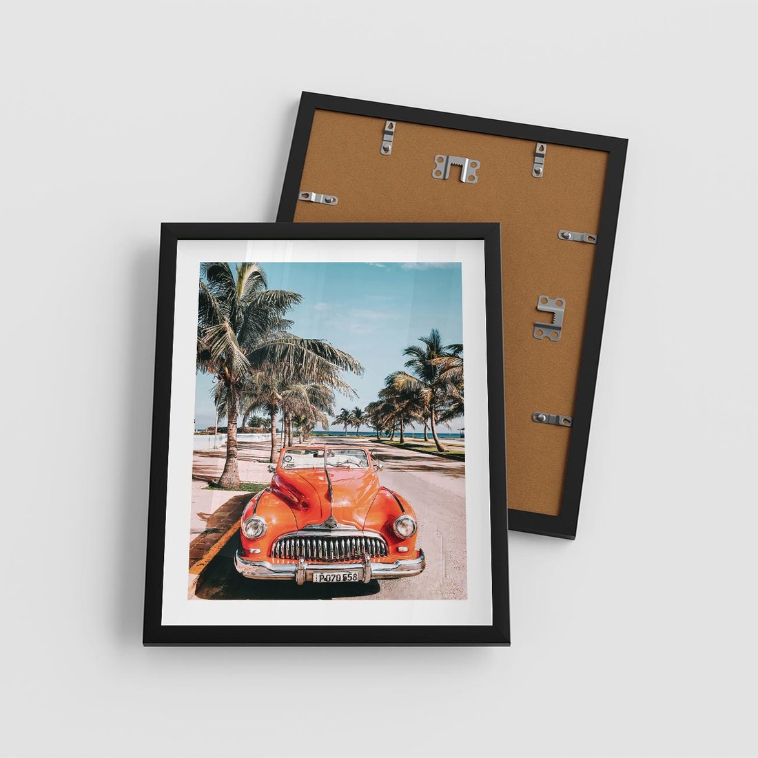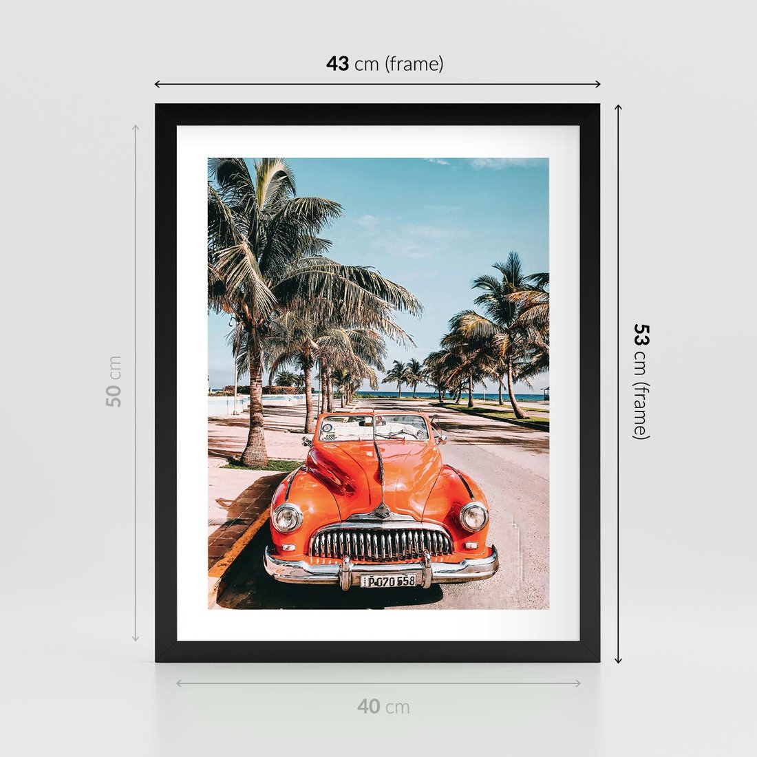 Plakat w ramie 40x50 - Retro Przejażdżka - pomarańczowy retro samochód, kabriolet - rama czarna