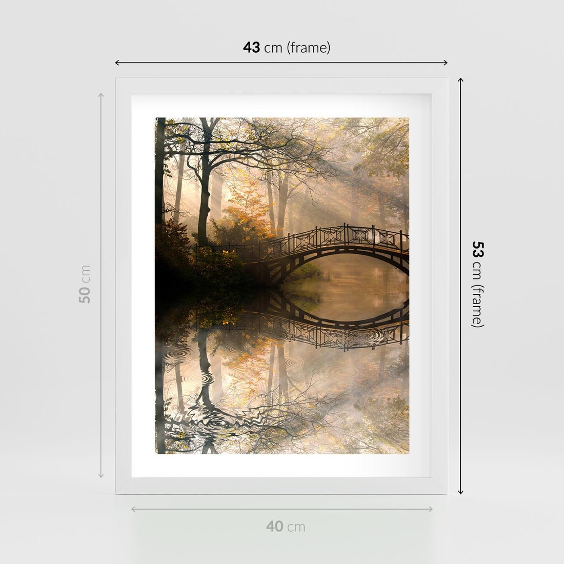 Plakat w ramie 40x50 - Romantyczny Mostek - mostek, romantyczny - rama biała
