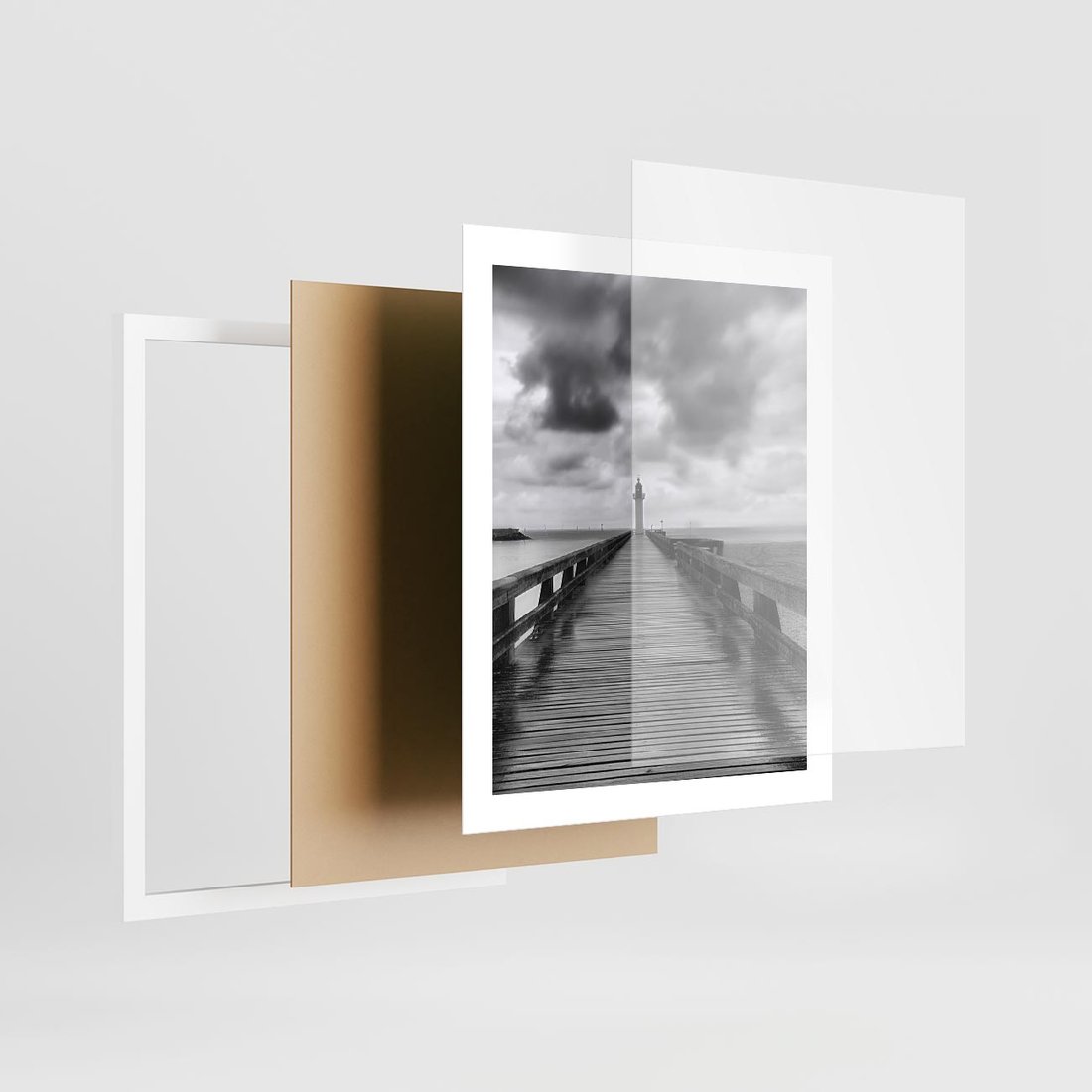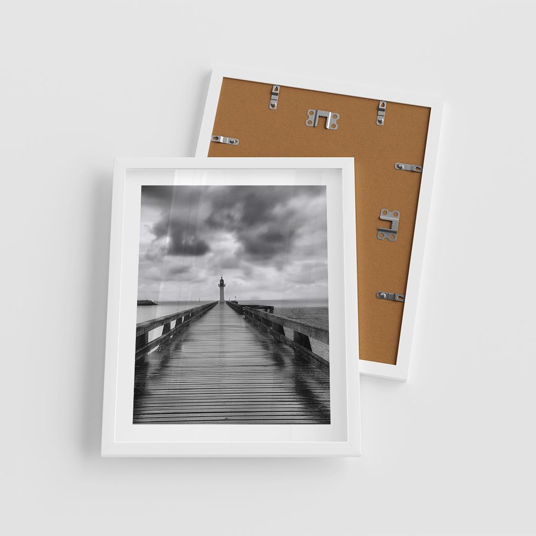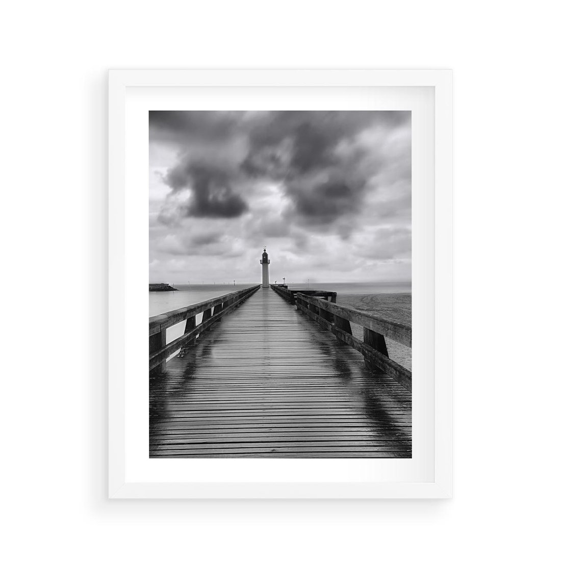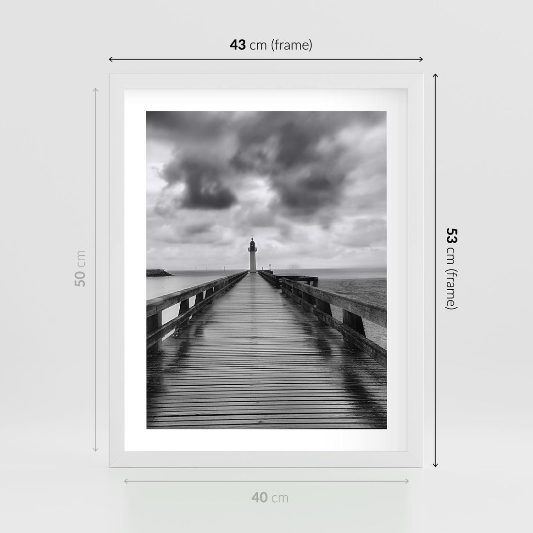 Plakat w ramie 40x50 - Romantyczny pomost z latarnią - pomost, latarnia - rama biała