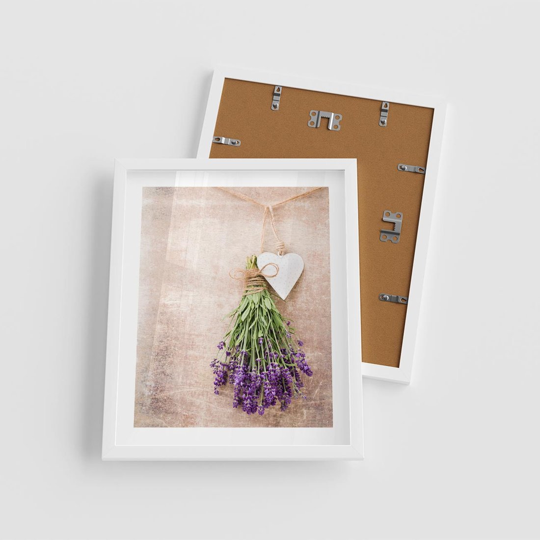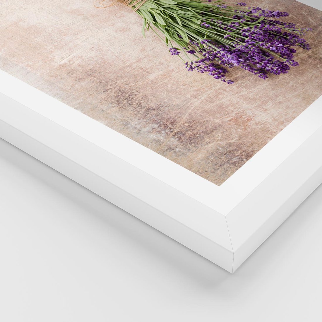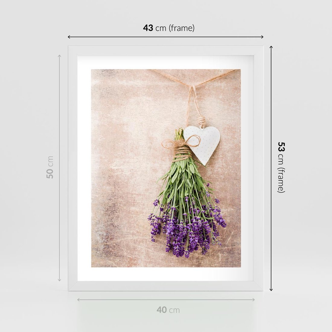 Plakat w ramie 40x50 - Romantyczny urok - lawenda, bukiet - rama biała