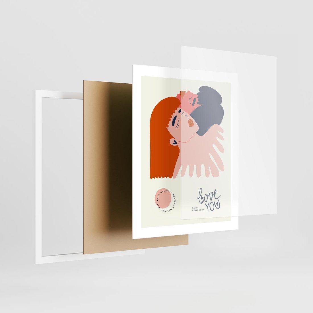 Ten graficzny obraz przedstawiający parę zakochanych jest odzwierciedleniem miłości w nowoczesnym, minimalistycznym stylu. Pastelowe kolory i wyraźne formy tworzą dynamiczną kompozycję, oddającą piękno uczucia we współczesnym kontekście. To idealny wybór dla tych, którzy pragną podkreślić romantyzm w sposób nowatorski i elegancki.