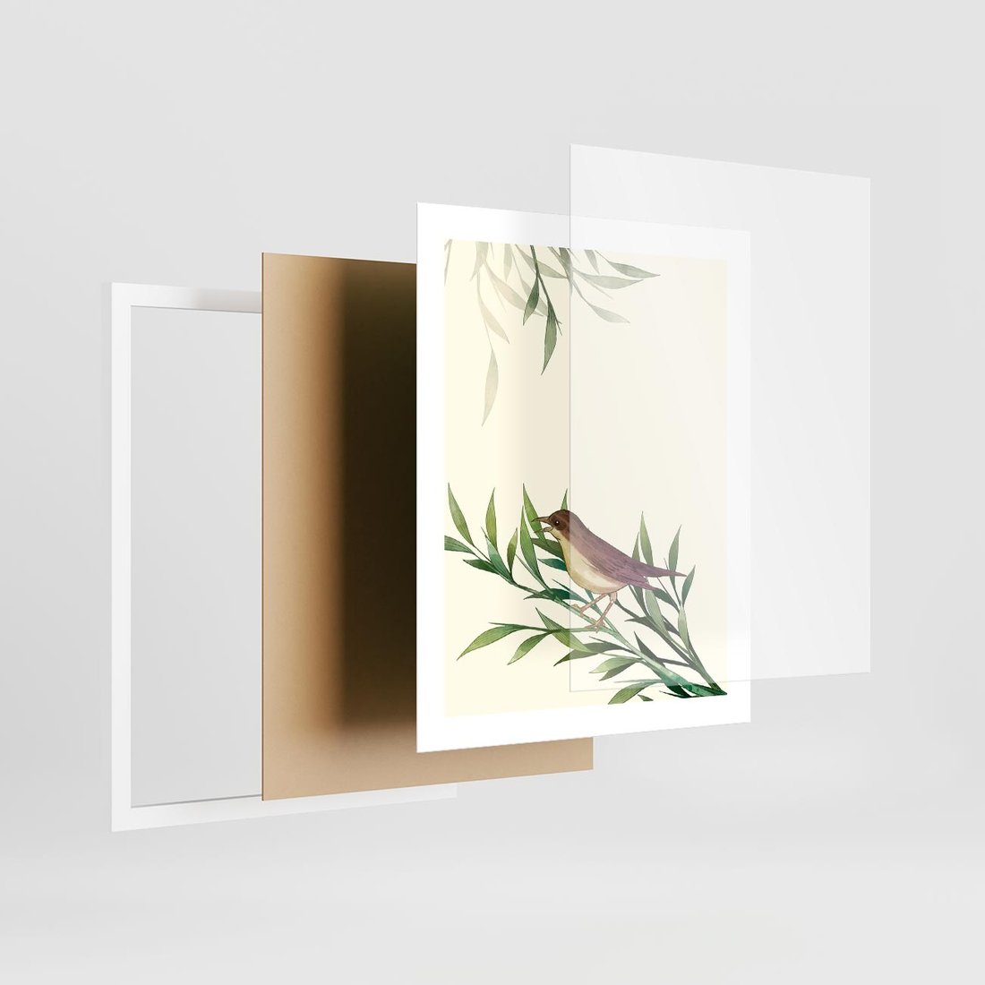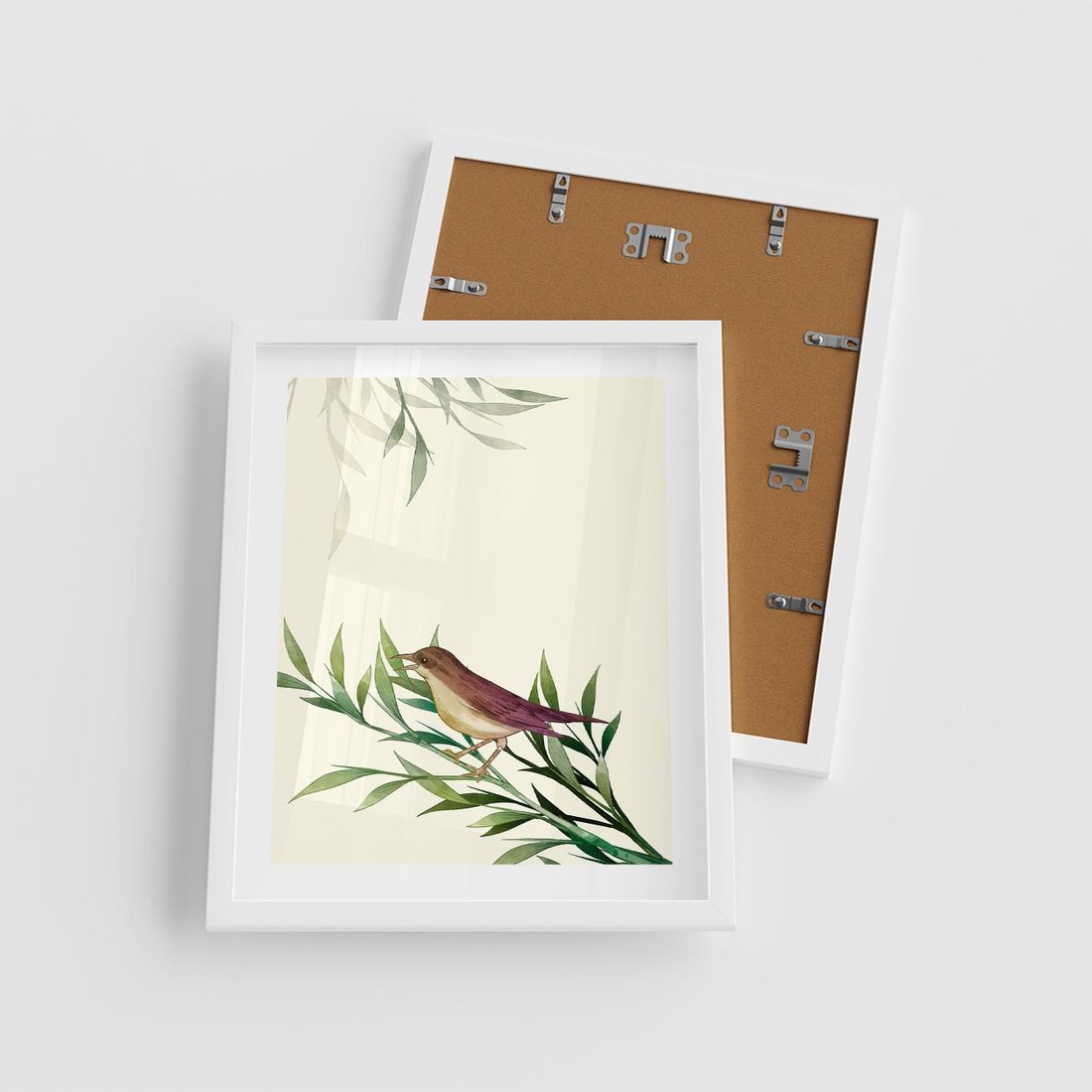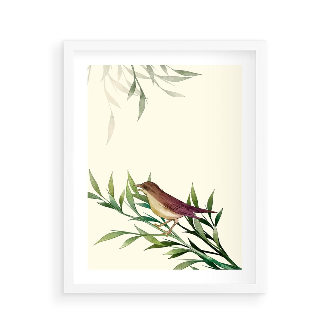 Plakat w ramie 40x50 - Roślinne Nastroje - japońska sztuka, ptak - rama biała