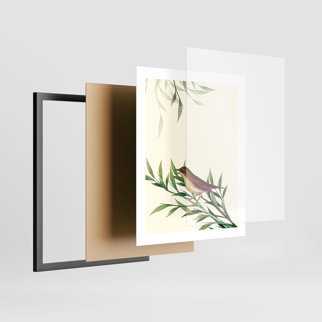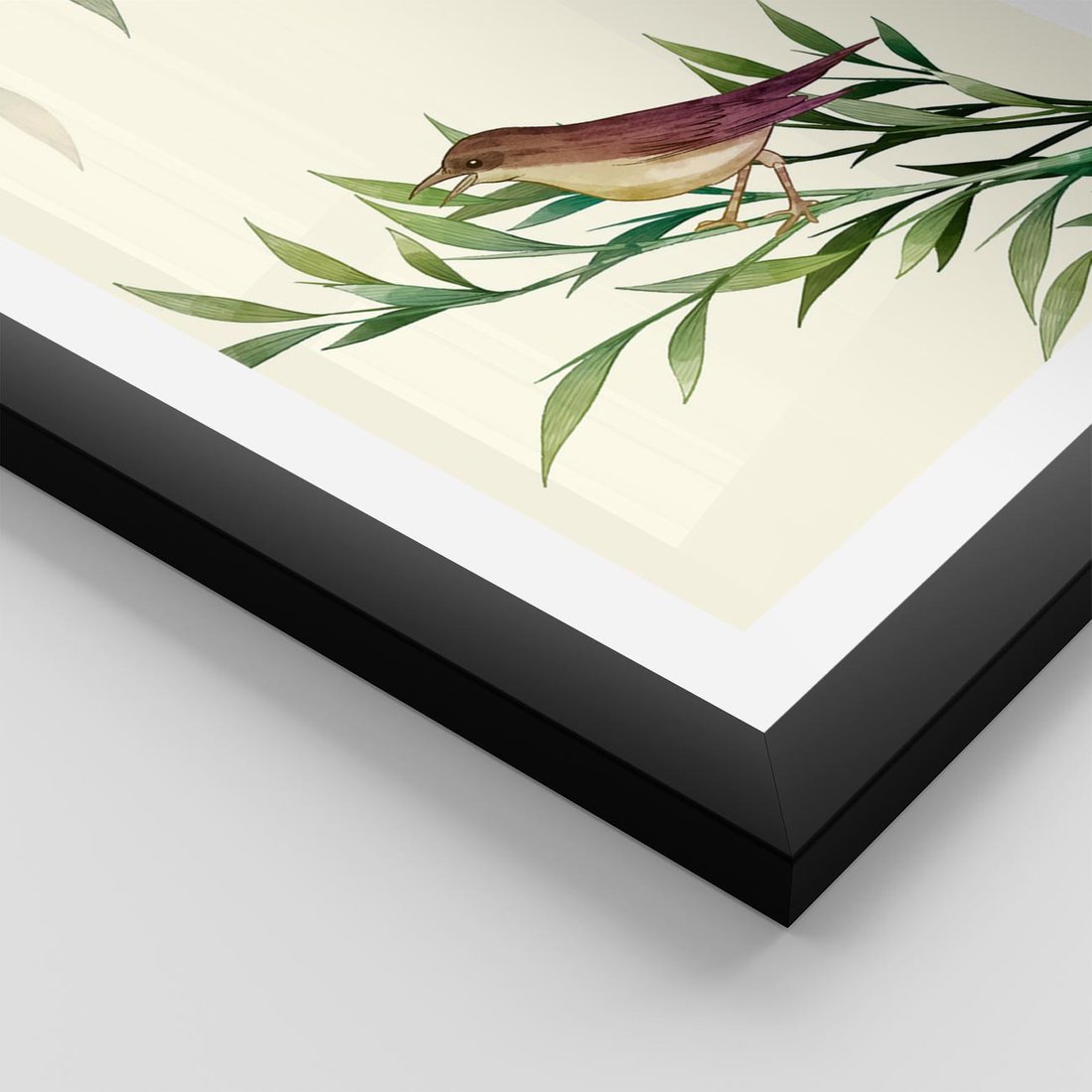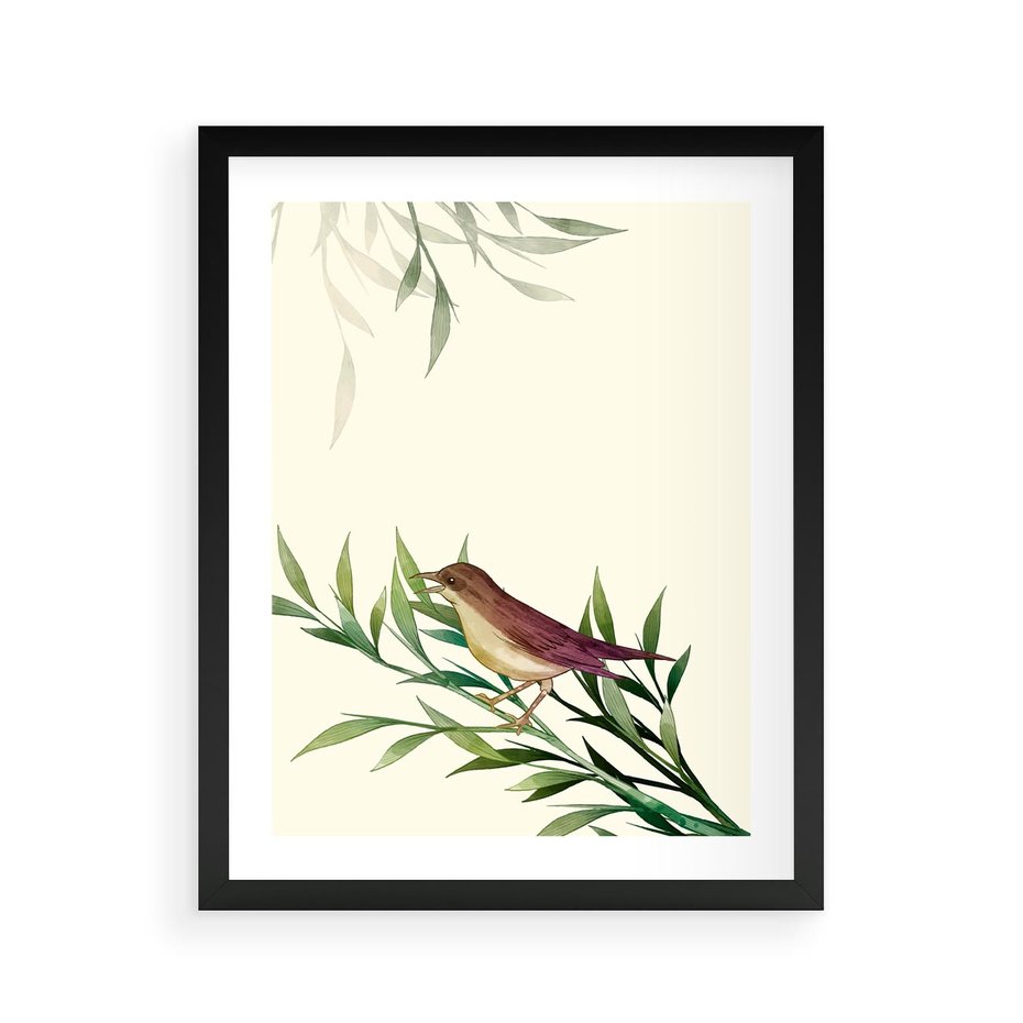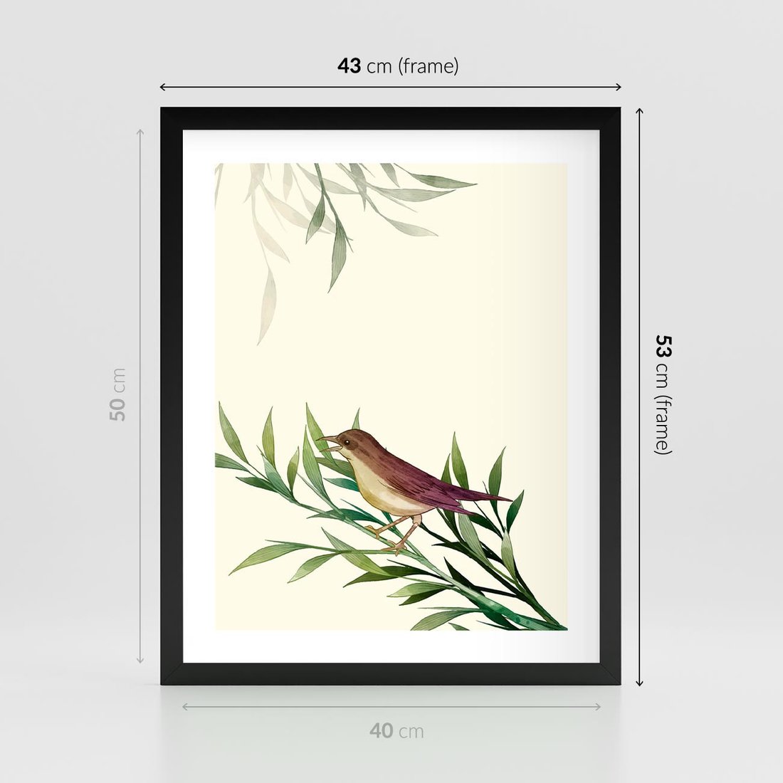 Plakat w ramie 40x50 - Roślinne Nastroje - japońska sztuka, ptak - rama czarna