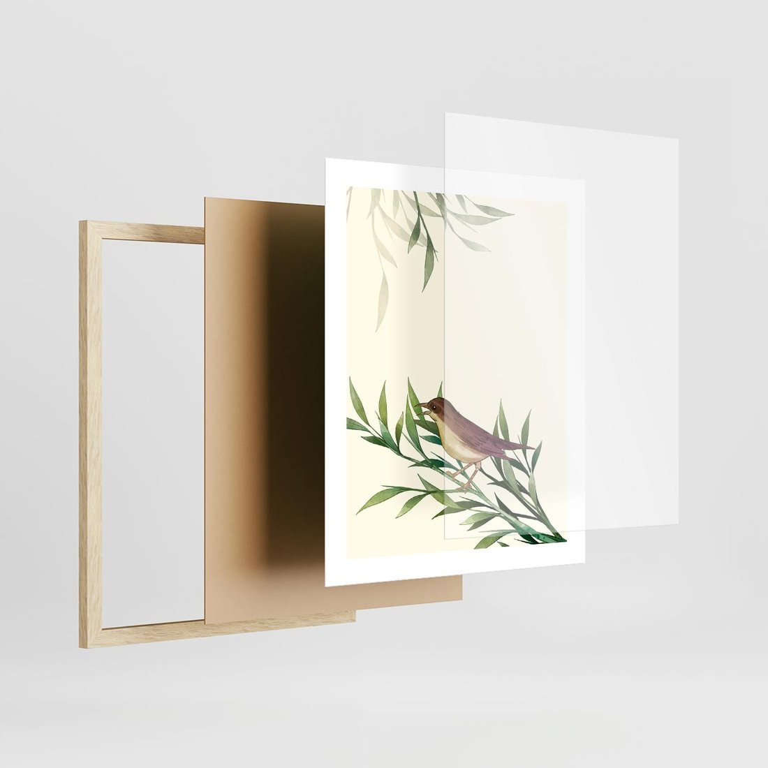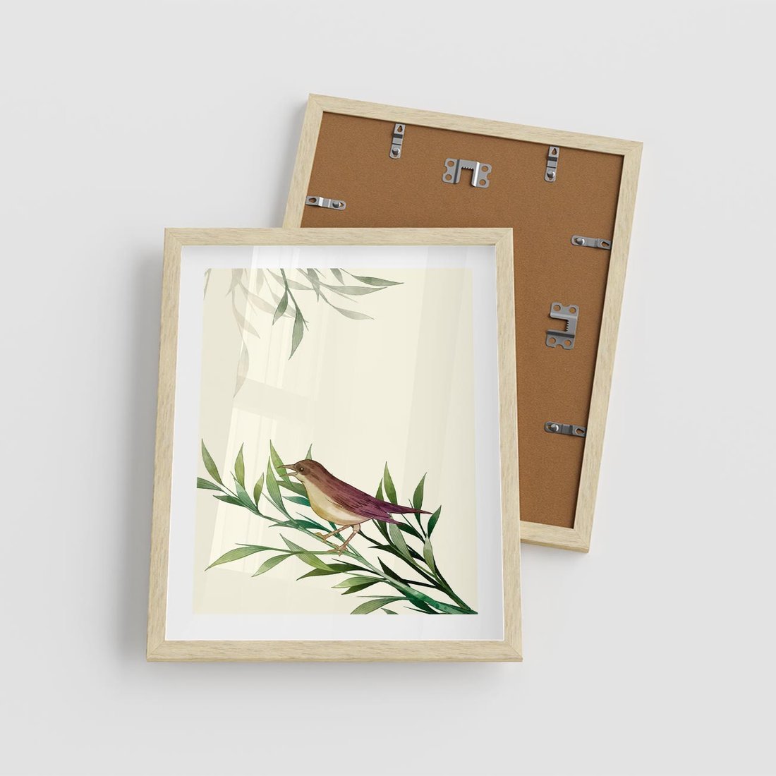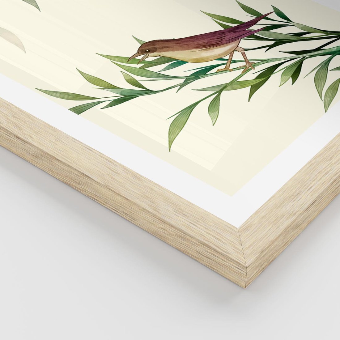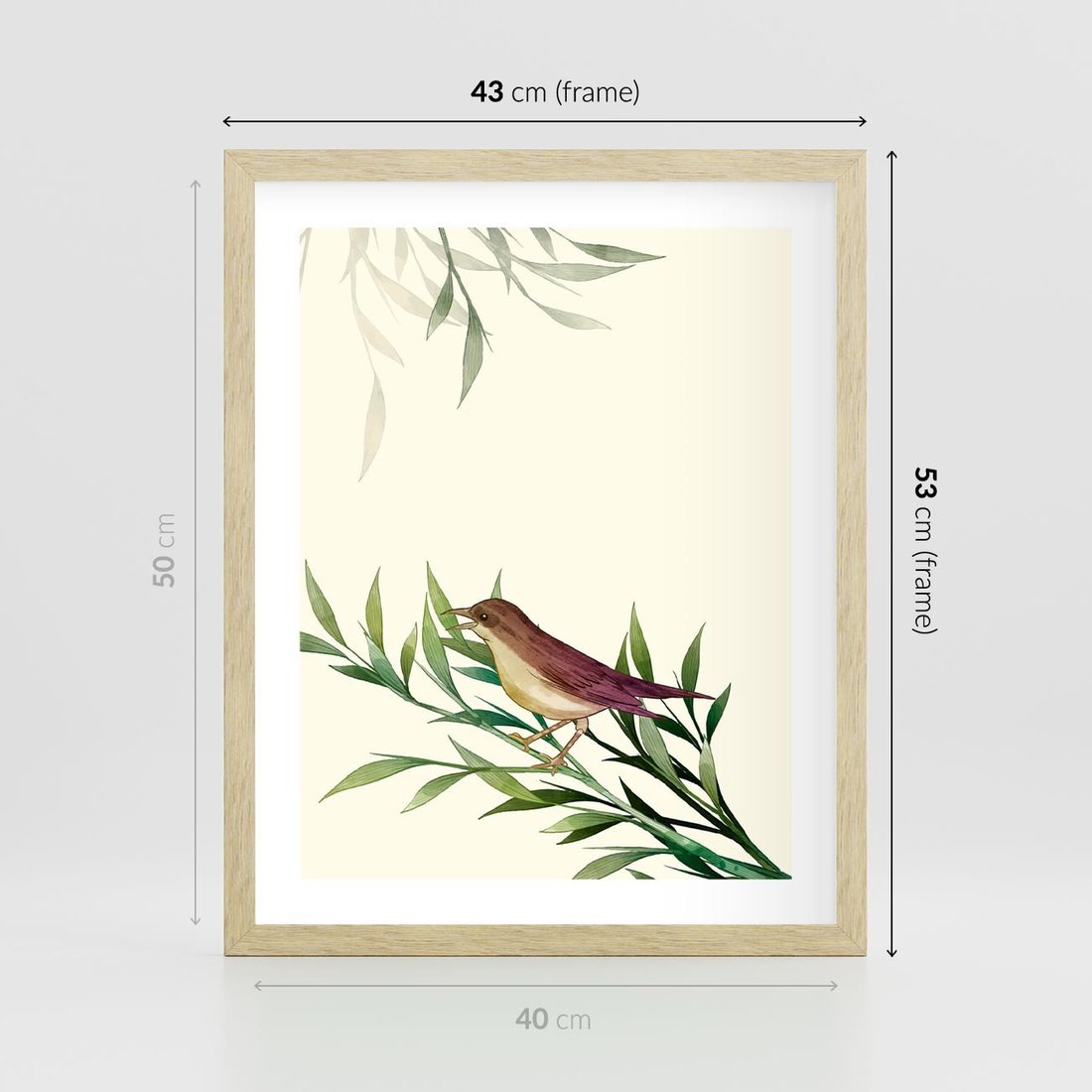 Plakat w ramie 40x50 - Roślinne Nastroje - japońska sztuka, ptak - rama drewno