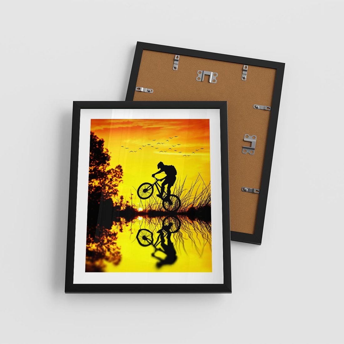 Plakat w ramie 40x50 - Rower przy zachodzie słońca - rower, zachód - rama czarna