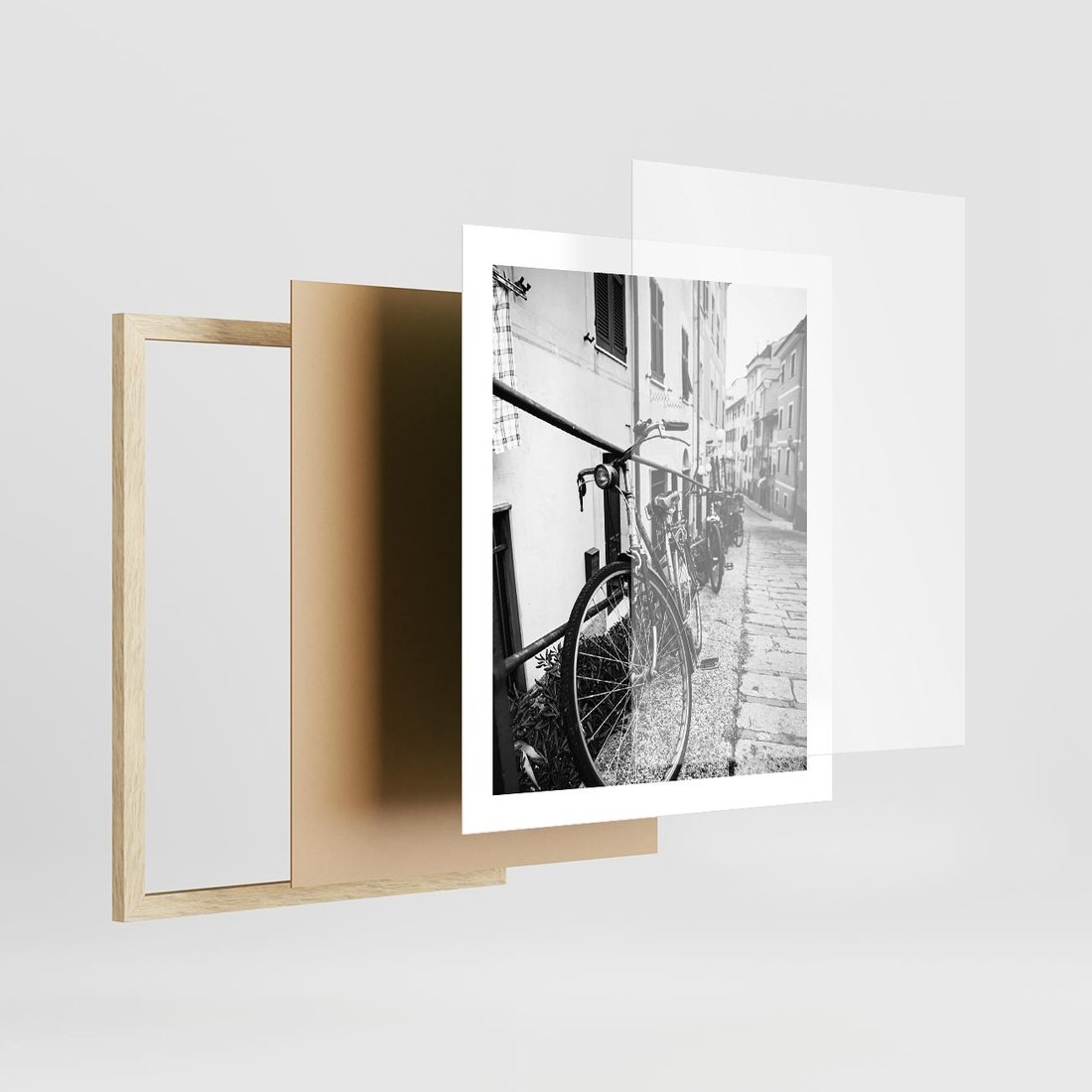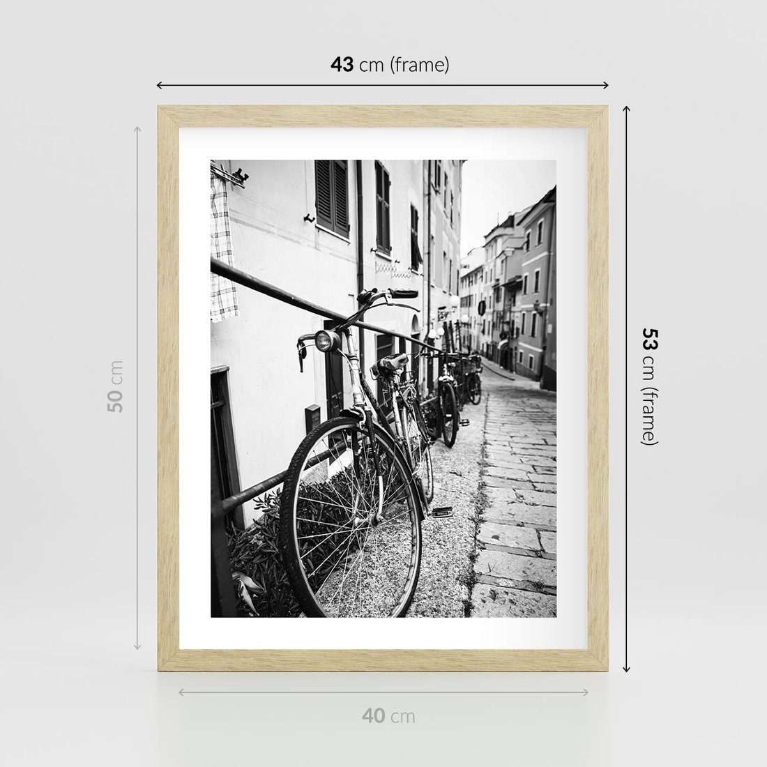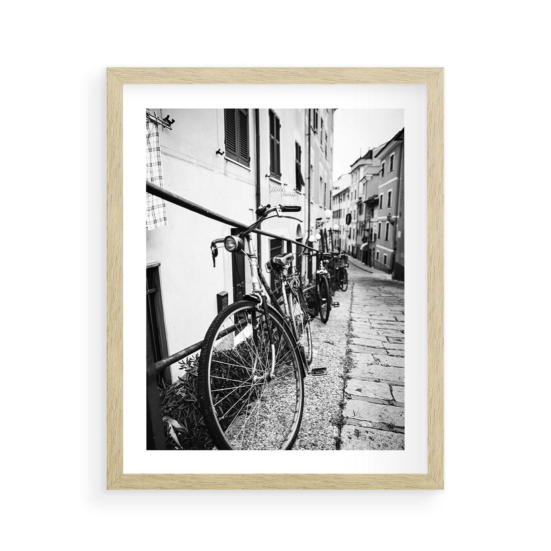 Plakat w ramie 40x50 - Rower w Kontraście - rower, czarno - rama drewno