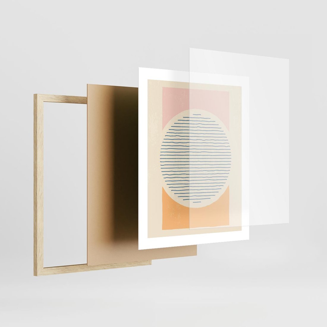 Geometryczne kształty w subtelnych pastelowych odcieniach tworzą harmonijną kompozycję. Minimalistyczny design z dominującymi kołami dodaje wyjątkowego uroku.